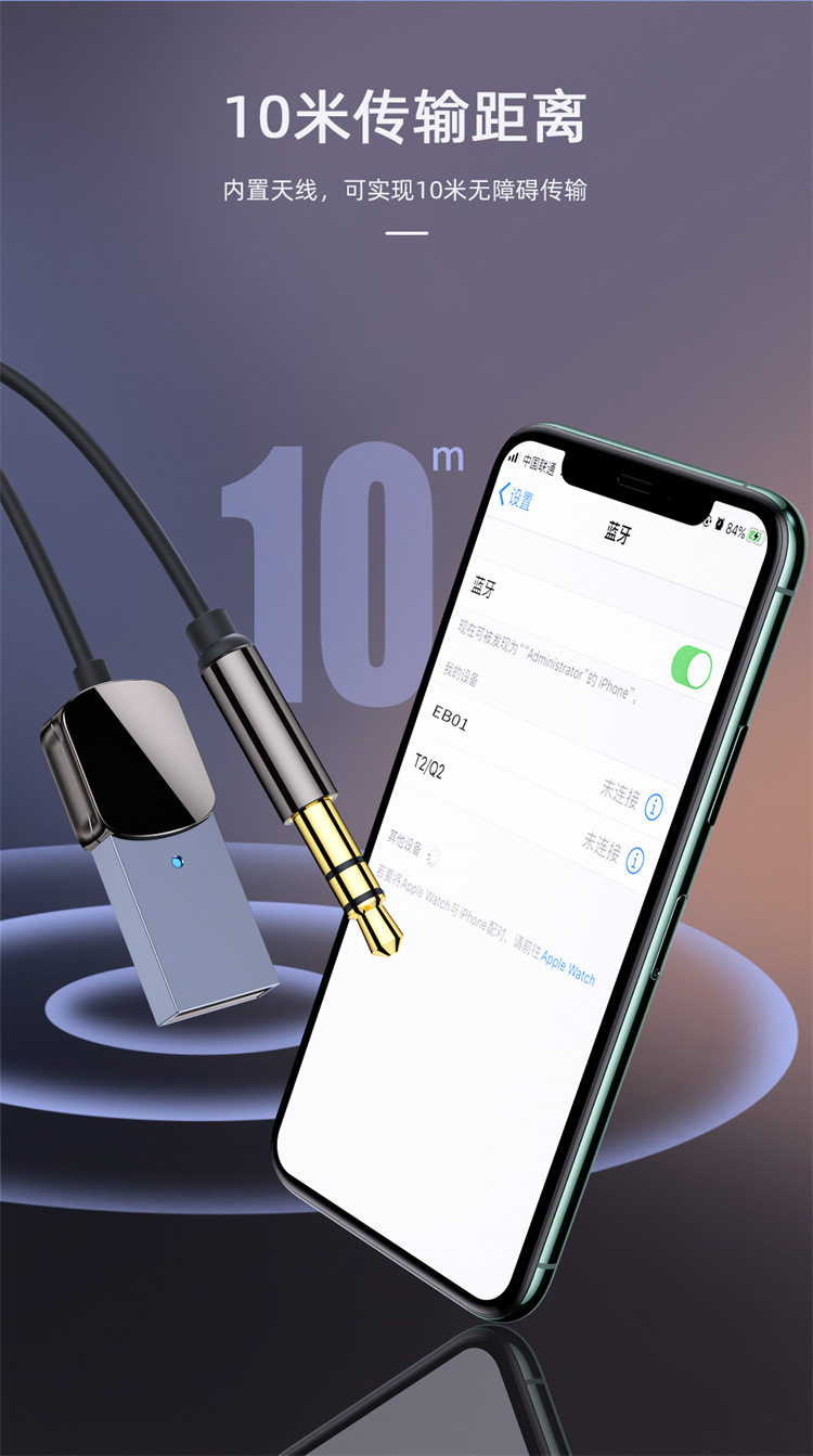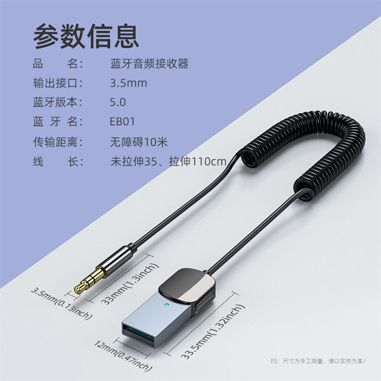 Essager EB01 Series Bluetooth 5.0 Audio Receiver 3,5 мм автомобиль беспроводной аудио -запуск адаптер