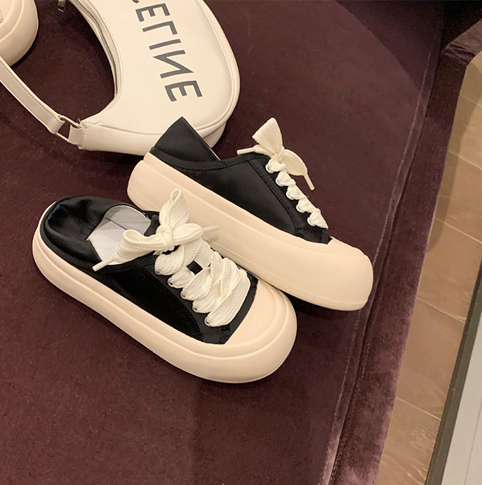 Тканевая шелковая универсальная белая обувь на платформе, кроссовки, из натуральной кожи