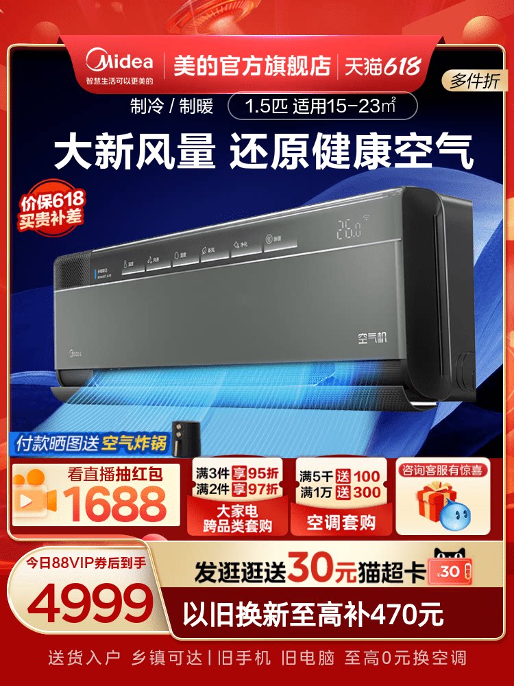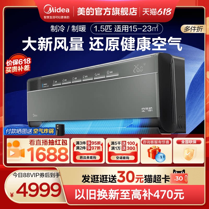 Кондиционирование воздуха Midea 1,5 ПИКИН ВЕДЕЖНАЯ Эффективность энергоэффективности частоты частоты частоты, теплый и теплый свежий воздух, не висящий бактериальный самолет без стиля нет T5
