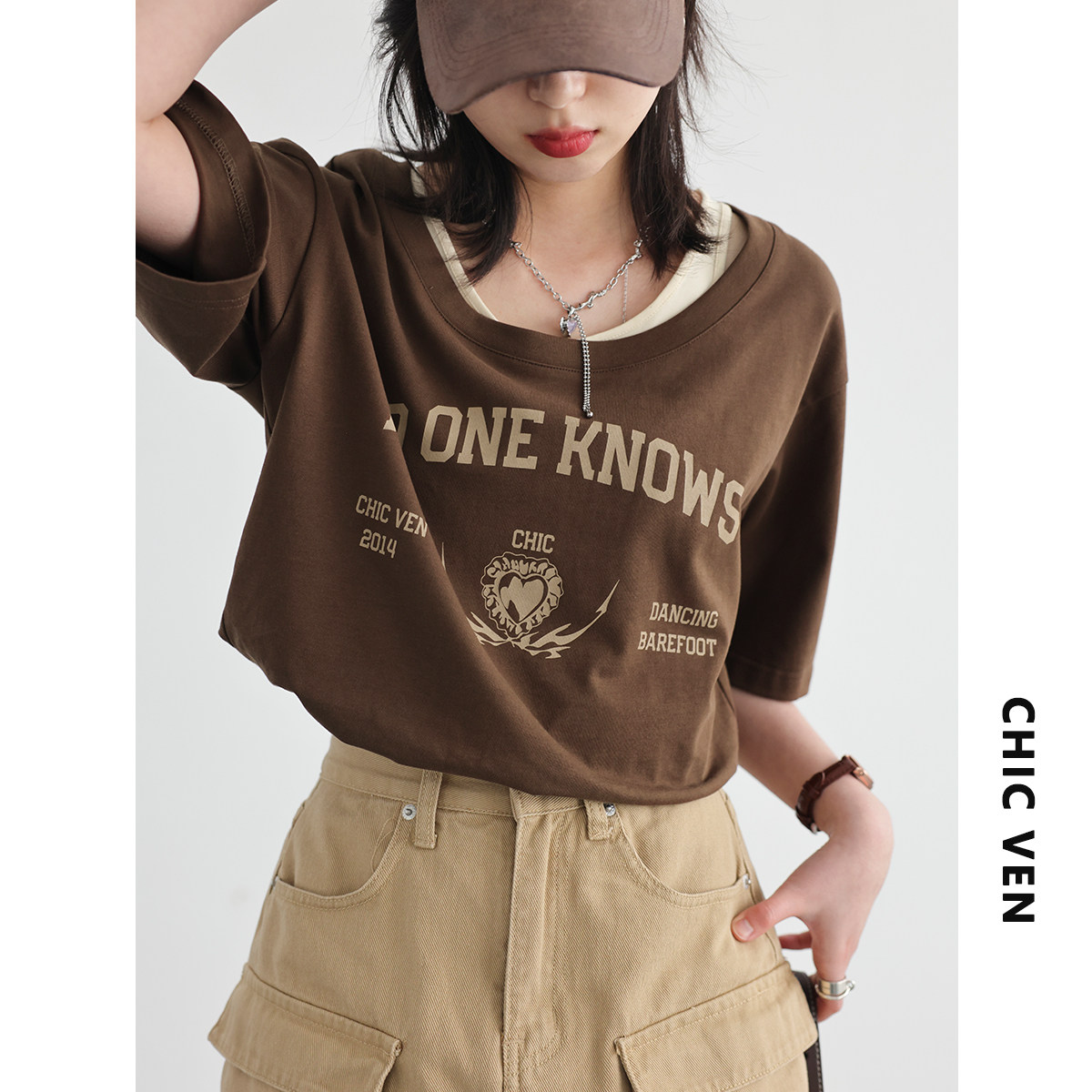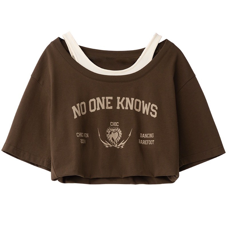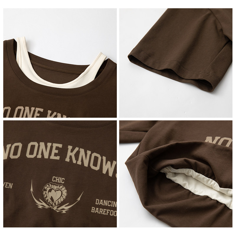Chicven "Campus Street" Американская ретро-фальшивая фальшивая двух часа контрастная печатная футболка Top Summer Small Small