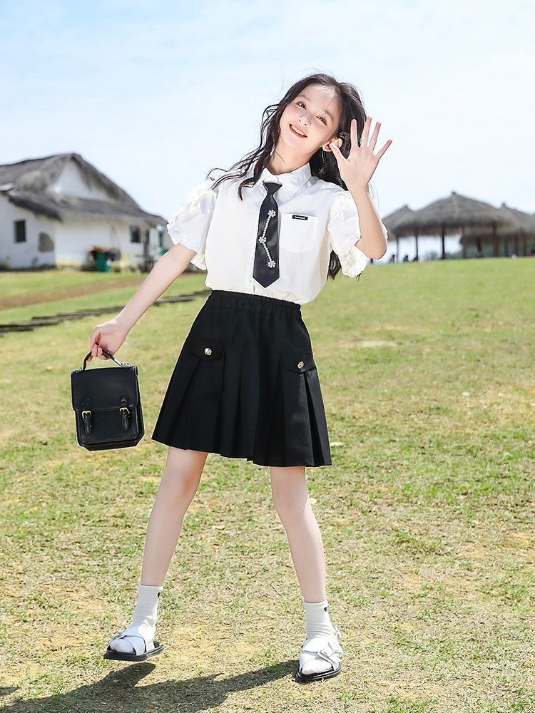 Комплект, детская летняя одежда, летняя форма, юбка в складку, коллекция 2023, в западном стиле