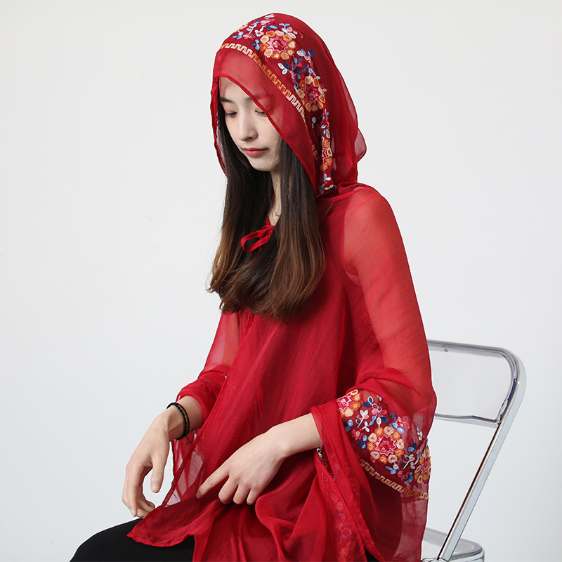 Накидка с капюшоном, легкий и тонкий красный плащ, защита от солнца