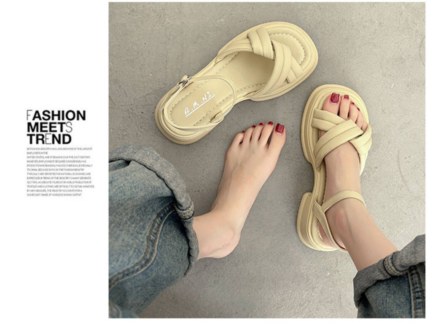 Летние сандалии на платформе, пляжная обувь, французский стиль, изысканный стиль