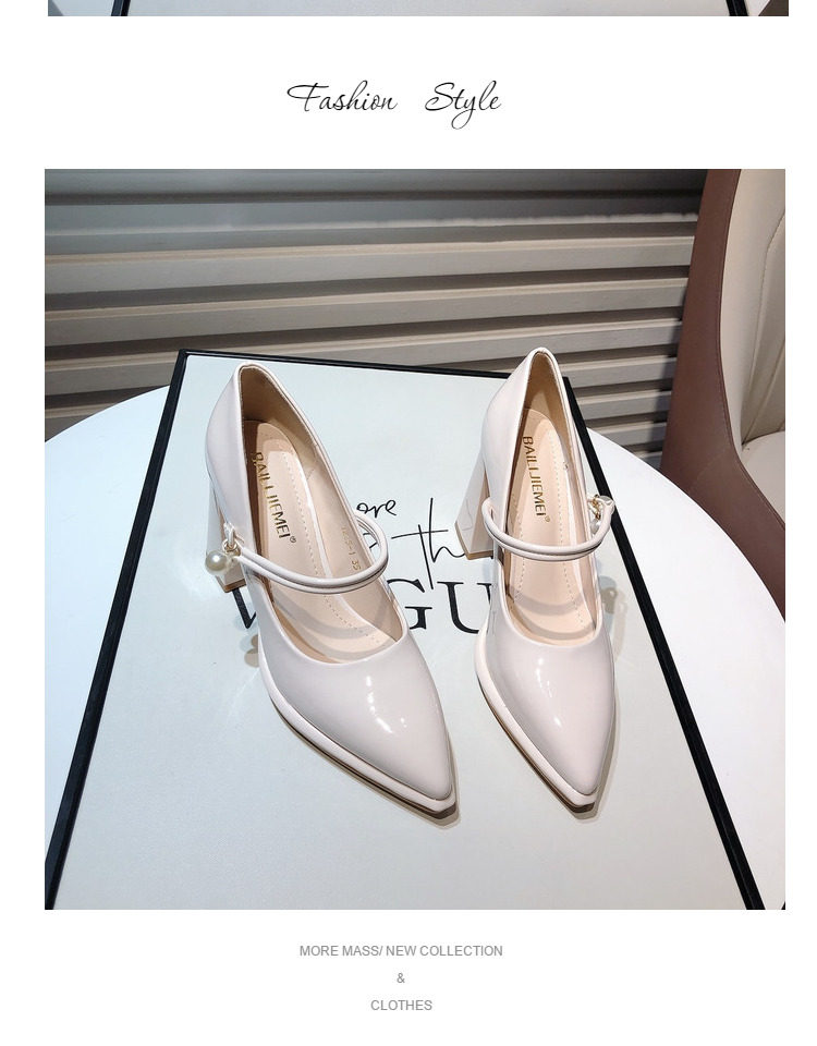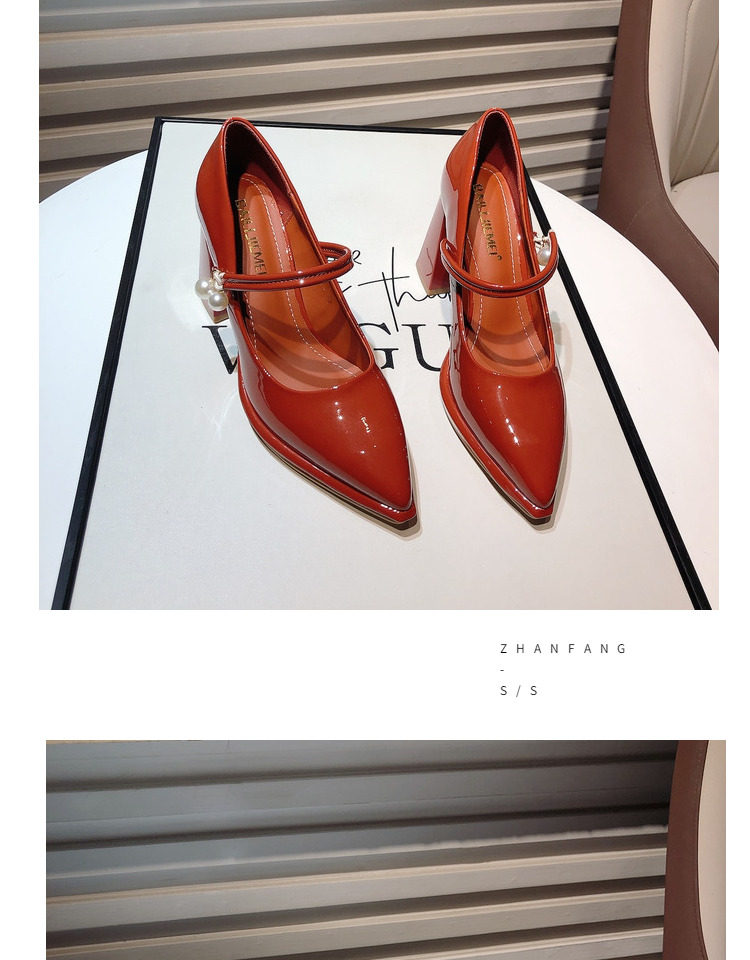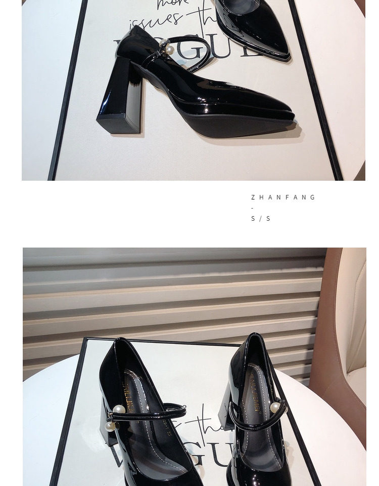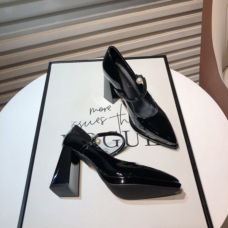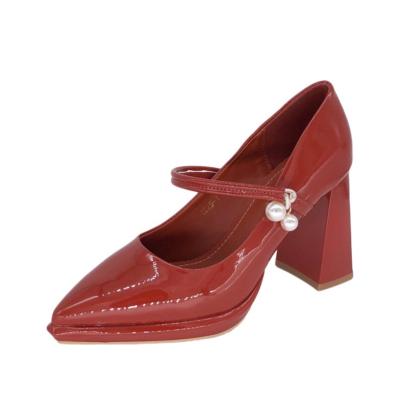 Гонконг, 2025 г., новые французские туфли из лакированной кожи с острым носком и жемчугом, водонепроницаемые туфли на плоской подошве и толстом каблуке на платформе, подиумные туфли