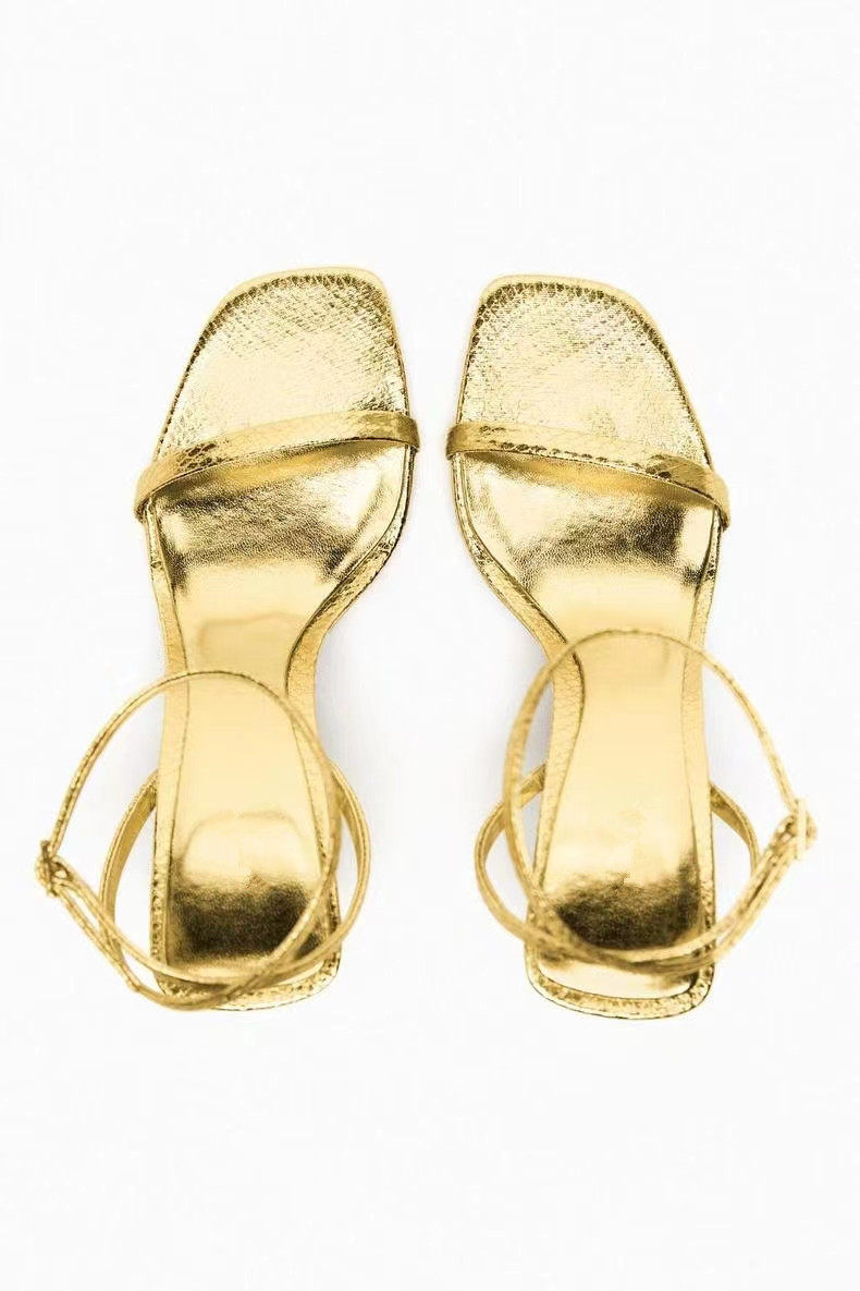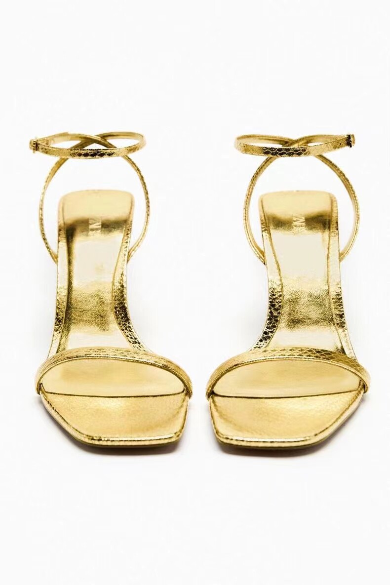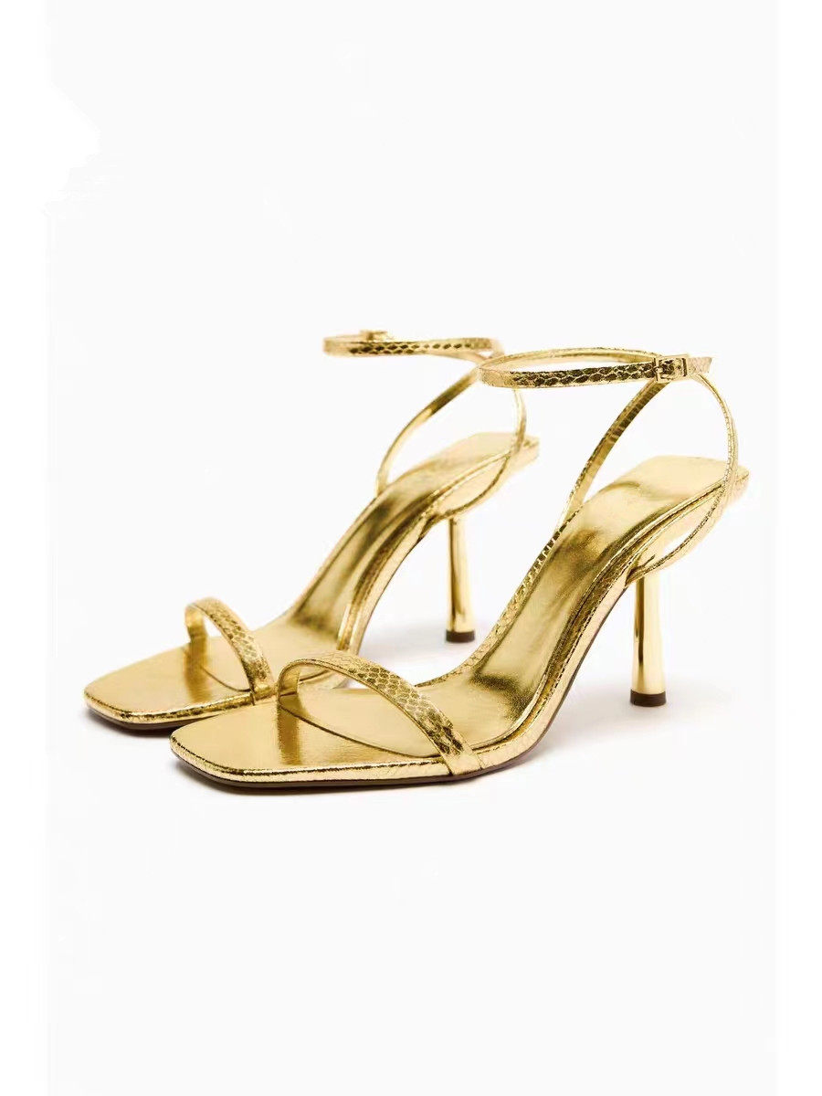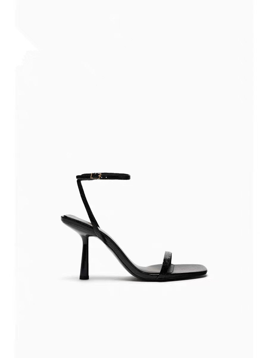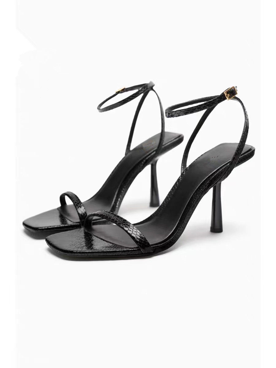 Летние черные туфли на высоком каблуке с ремешком, босоножки, яркий броский стиль