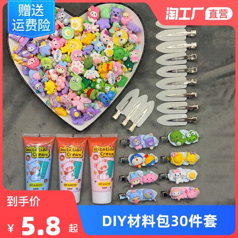 Милая кремовая заколка для волос, мультяшный набор материалов, картхолдер, шпильки для волос, комплект ручной работы, DIY, популярно в интернете