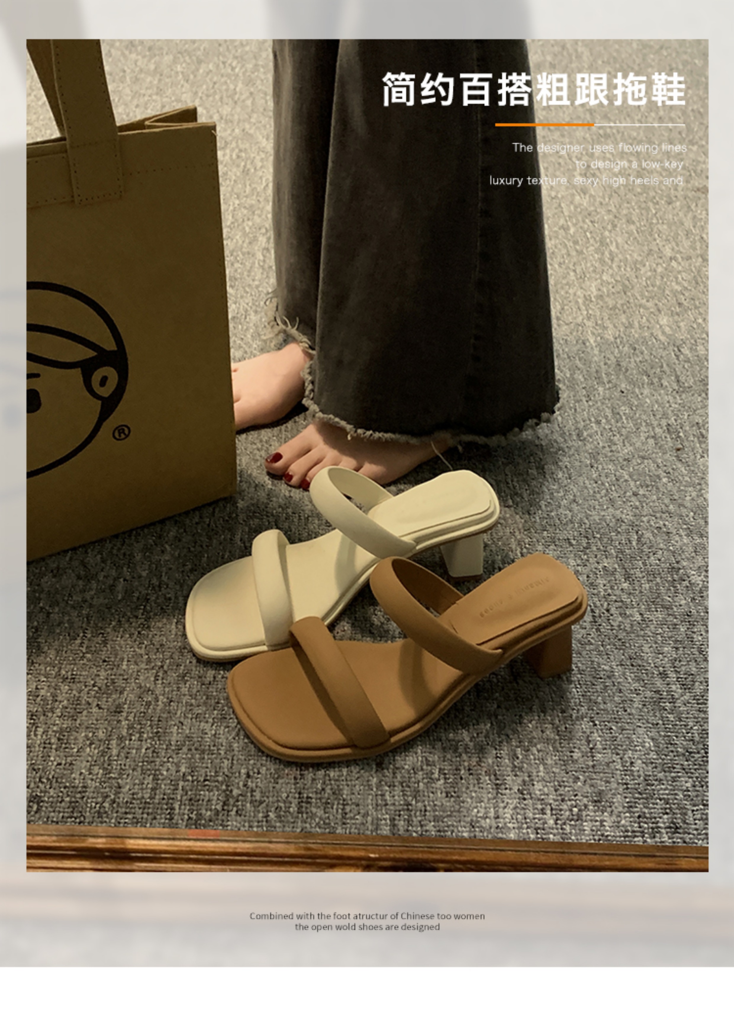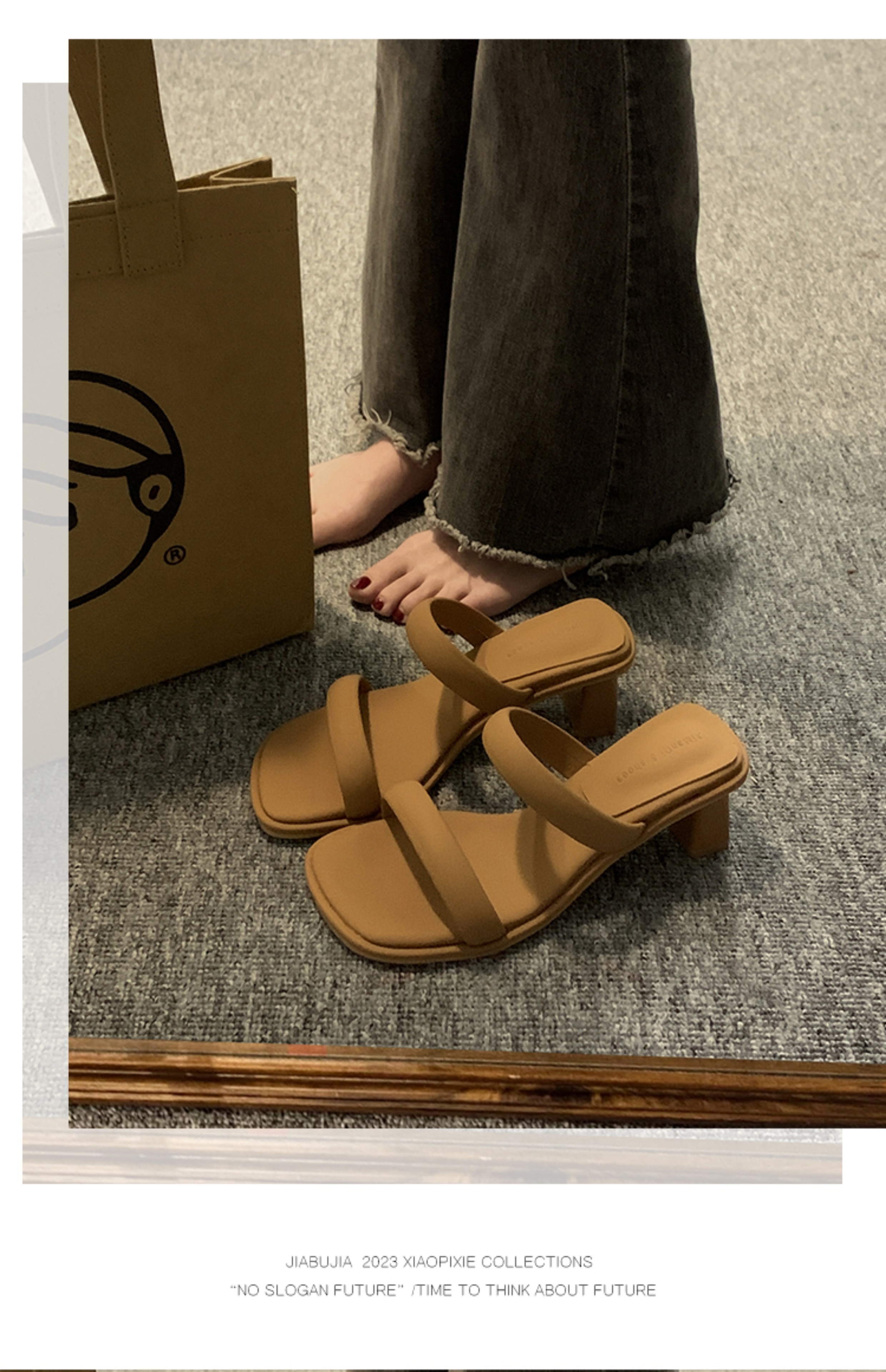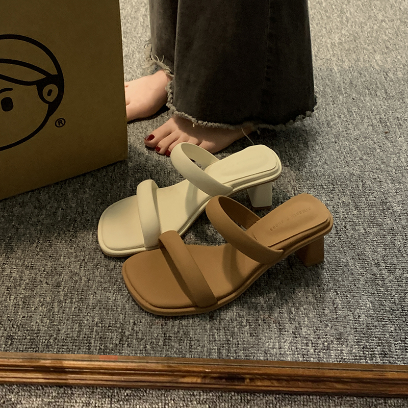 贾不假 Летние тапочки, обувь, высокие туфли на высоком каблуке, подходит с юбкой, слайдеры, французский стиль, изысканный стиль