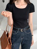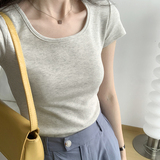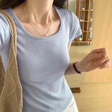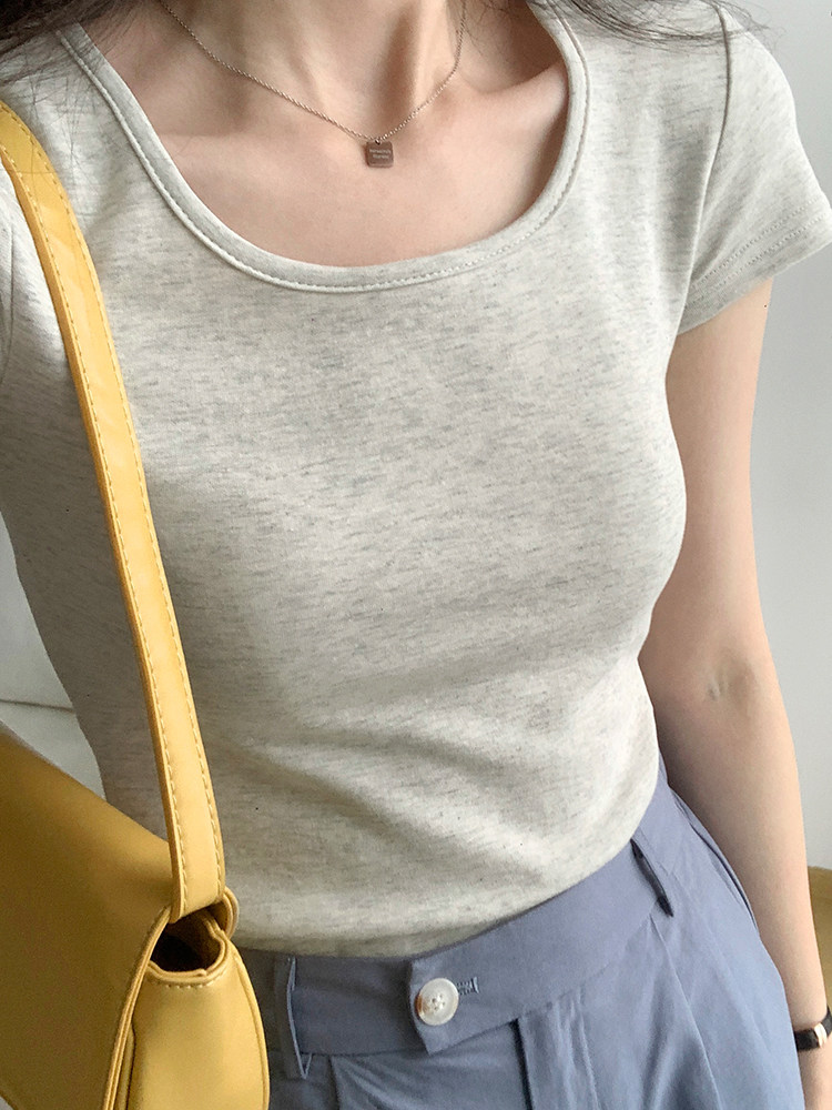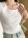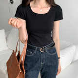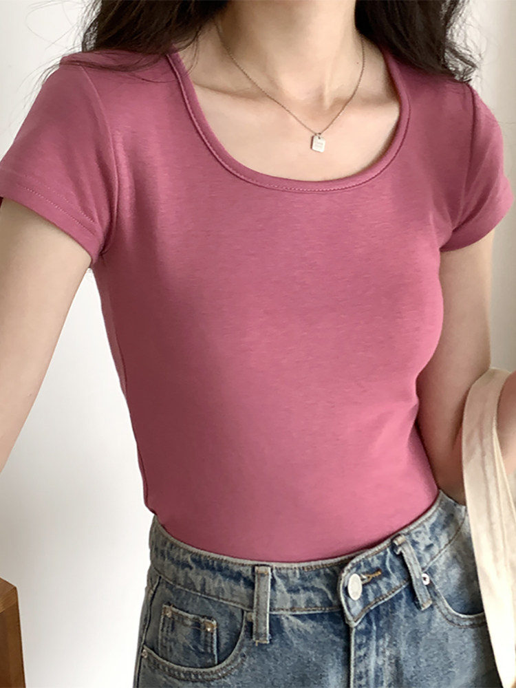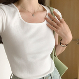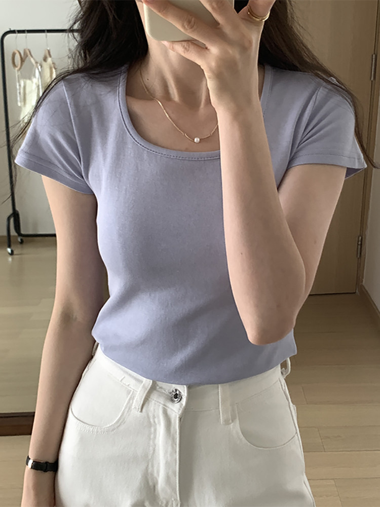 Летняя приталенная короткая футболка, квадратный вырез, по фигуре