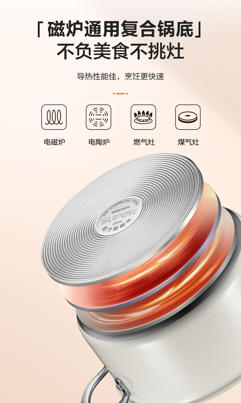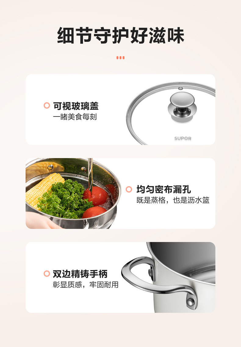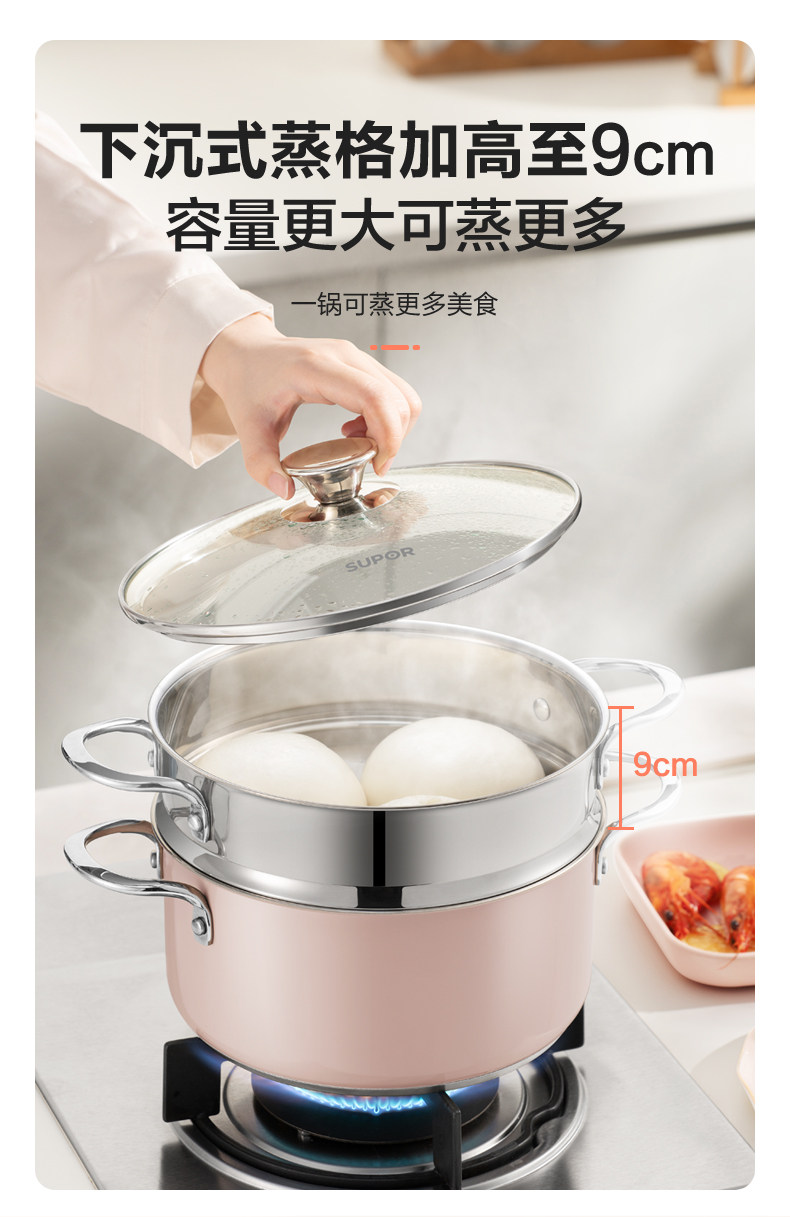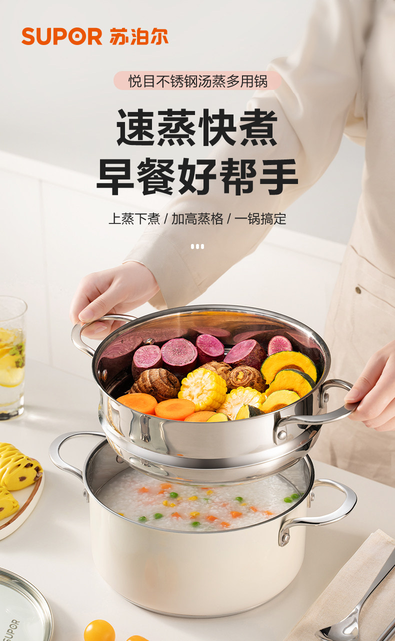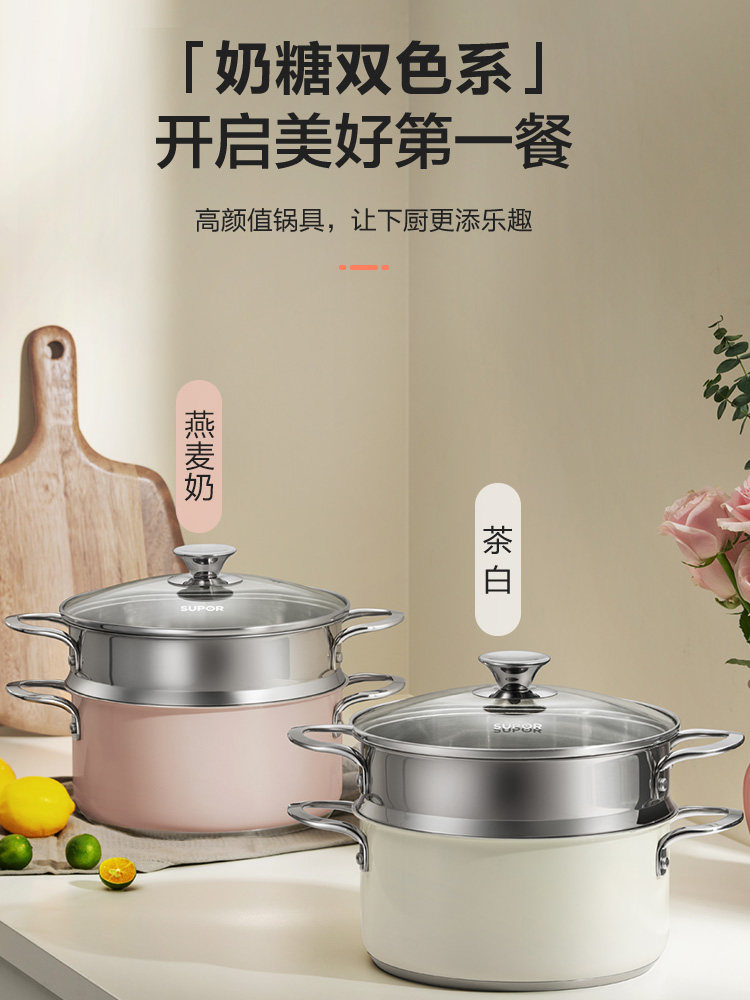 Supor Home Steamer Coldered Cheer и приготовление 304 Тушеная из нержавеющей стали суп -суп -суп Потетка Электромагнитная плита газовая плита Universal