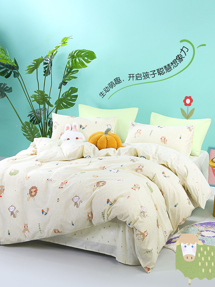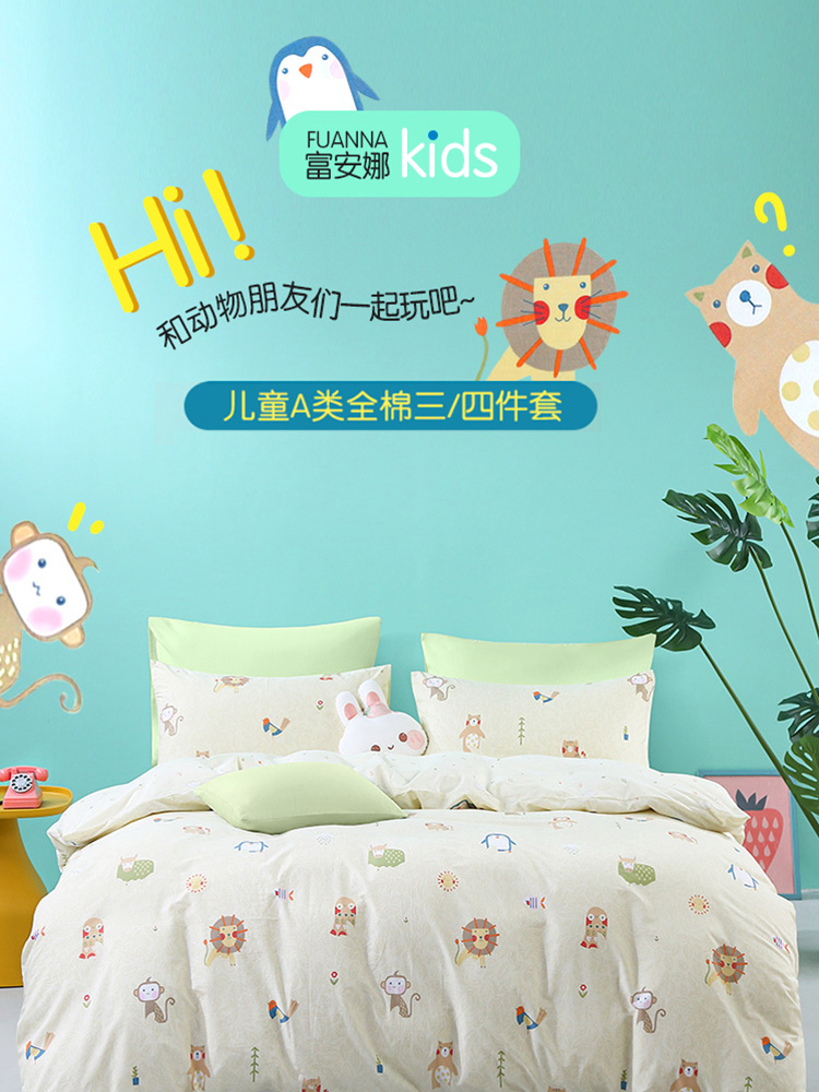 富安娜 Хлопковый комплект, хлопковое одеяло, детский мультяшный пододеяльник для школьников, 4 предмета, постельные принадлежности, 3 предмета