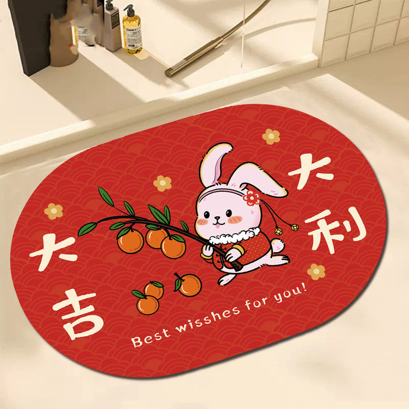 Мультяшный ковер, нескользящий праздничнный коврик, хорошо впитывает воду, год кролика