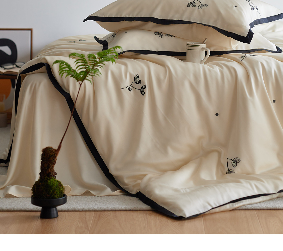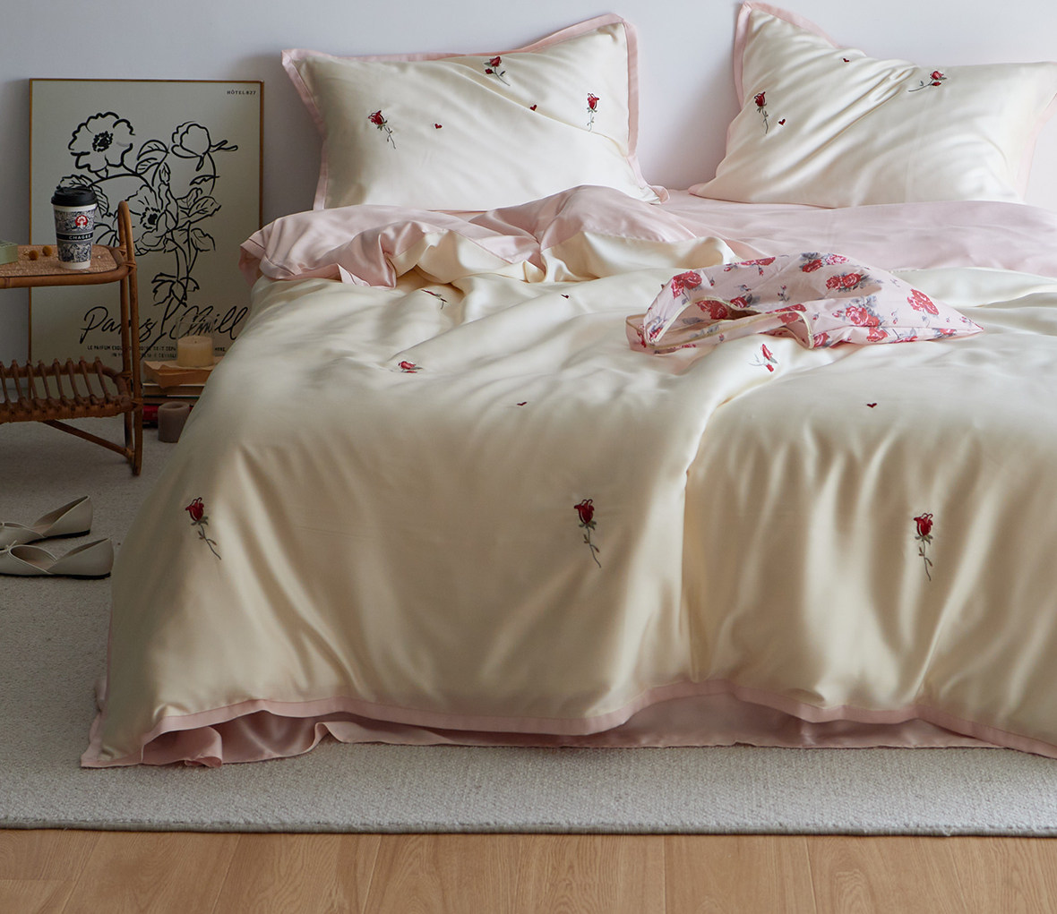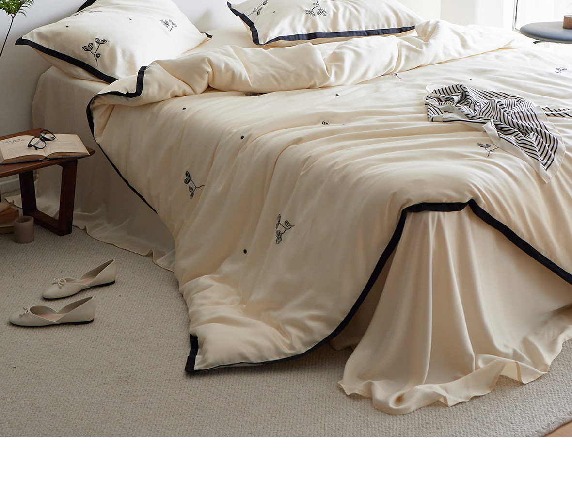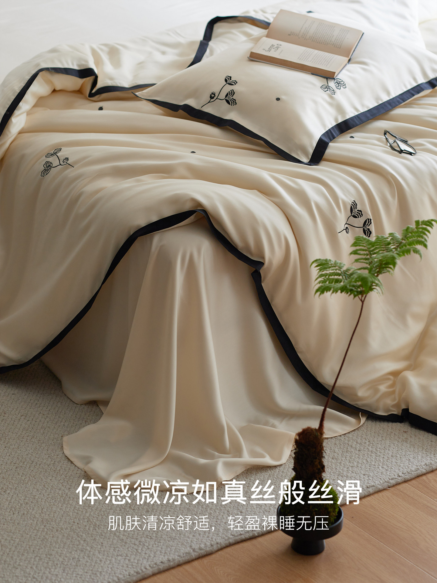 Комплект, летняя шелковая простыня, пододеяльник, покрывало, 4 предмета, легкий роскошный стиль, изысканный стиль