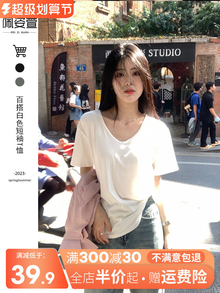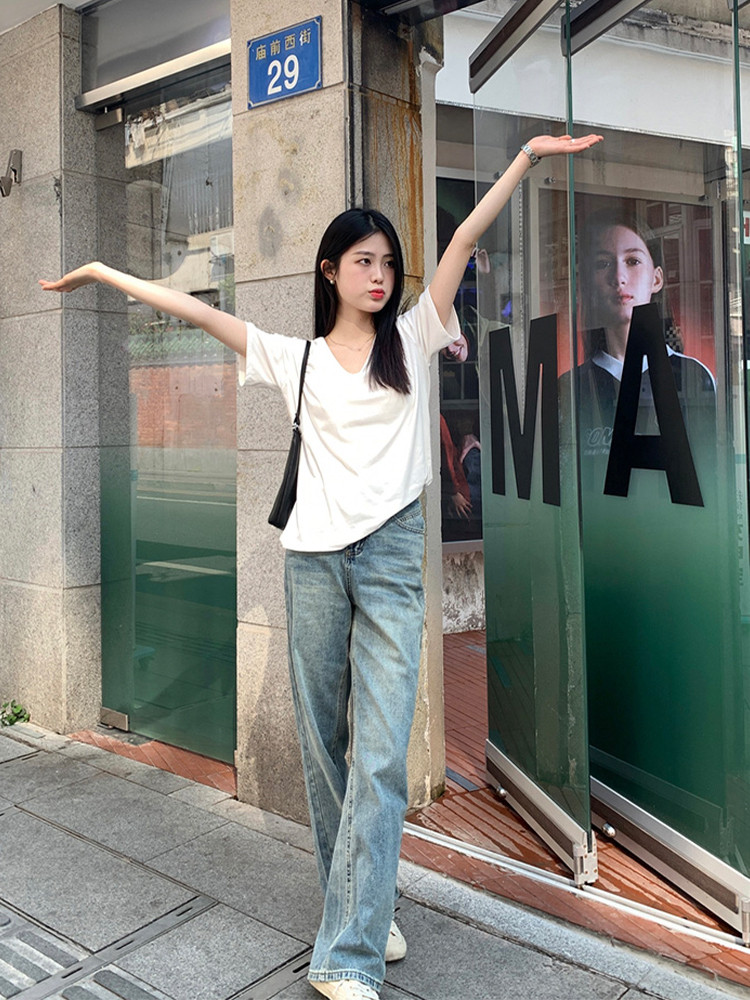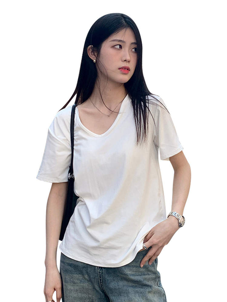 Белая летняя базовая приятная телу футболка с коротким рукавом, свободный крой