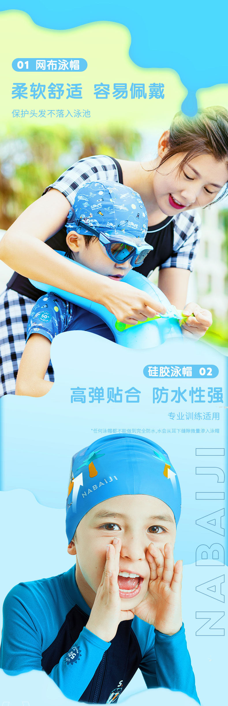 Детская шапочка для плавания Decathlon, удобная нерастягивающаяся водонепроницаемая сетчатая шапочка для плавания, силиконовая шапочка для девочек и мальчиков IVA4
