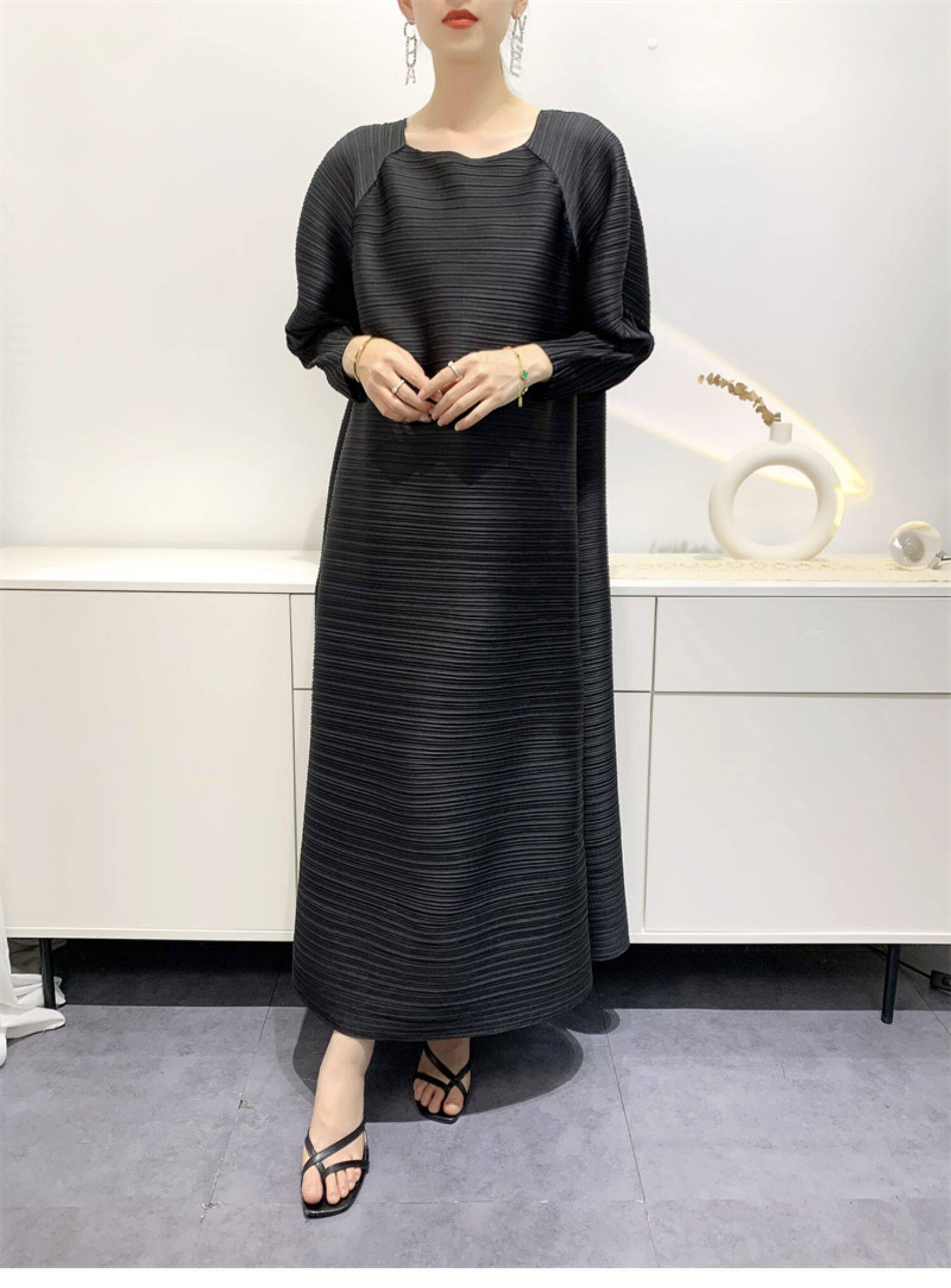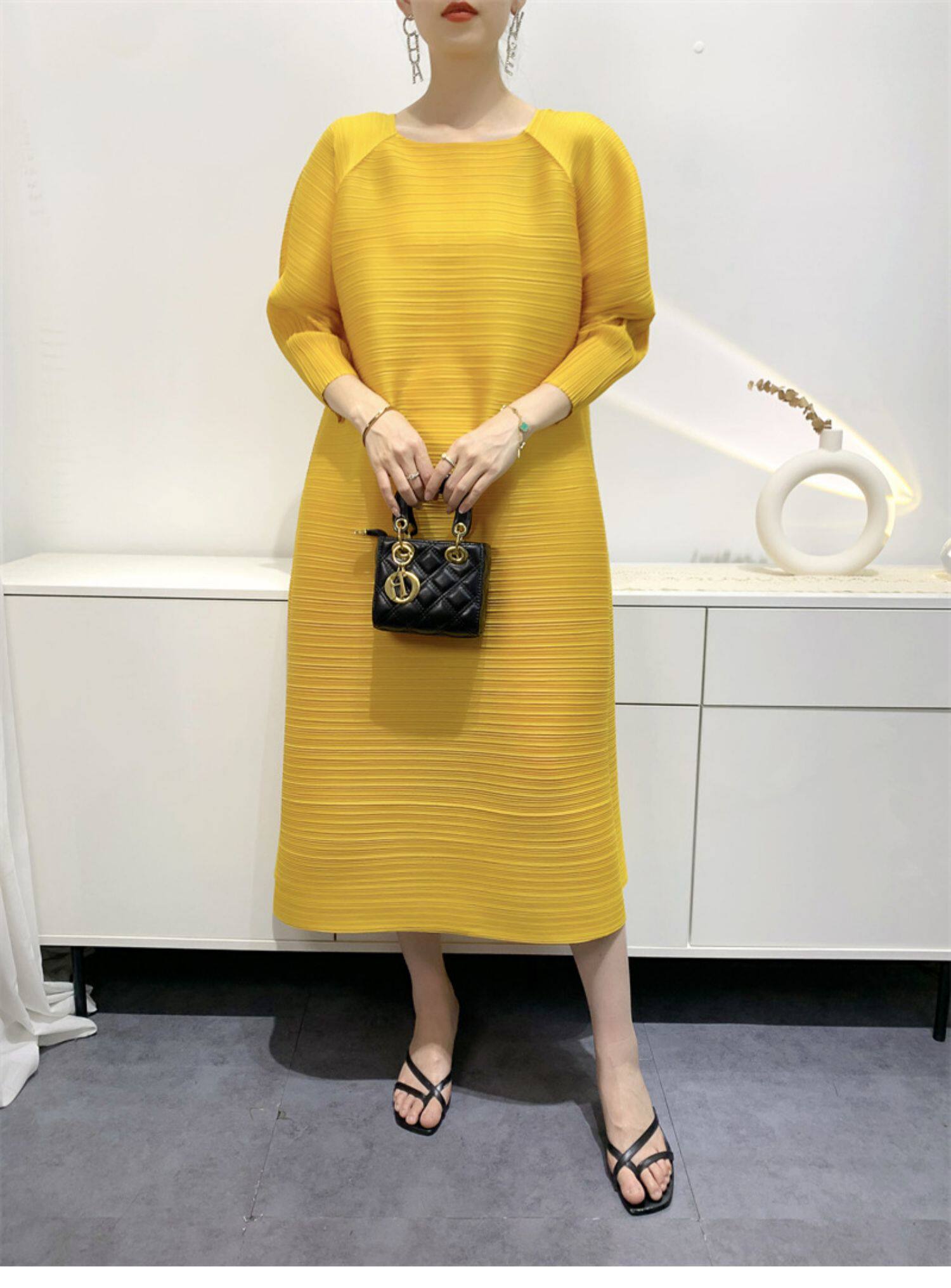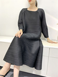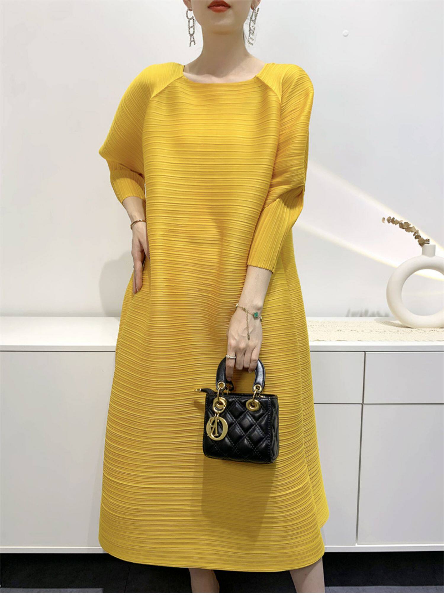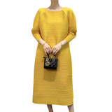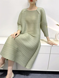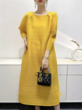Платье, летняя красная длинная юбка в складку с круглым воротником, яркий броский стиль, средней длины