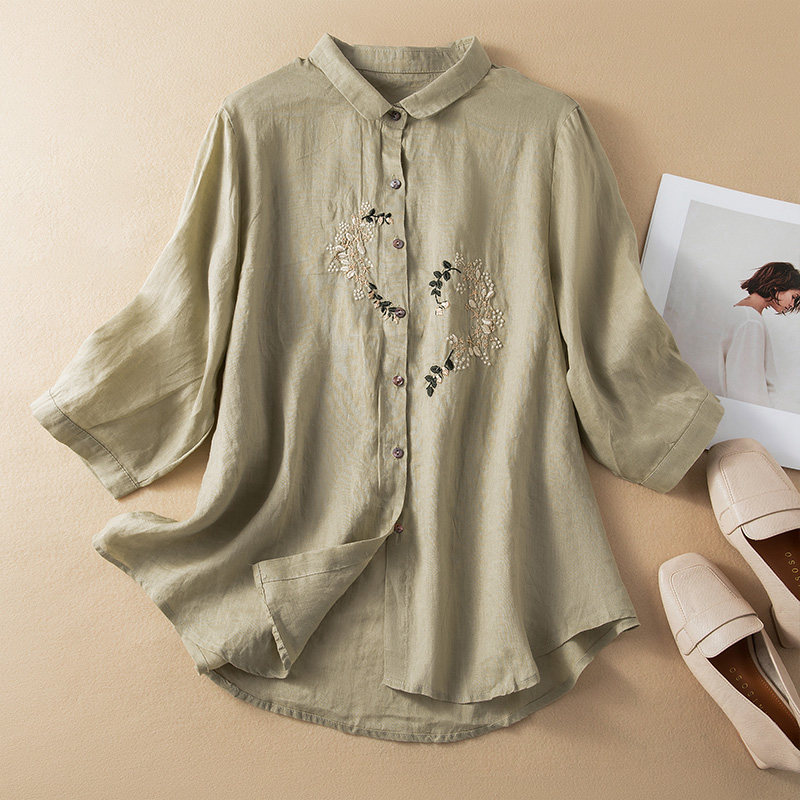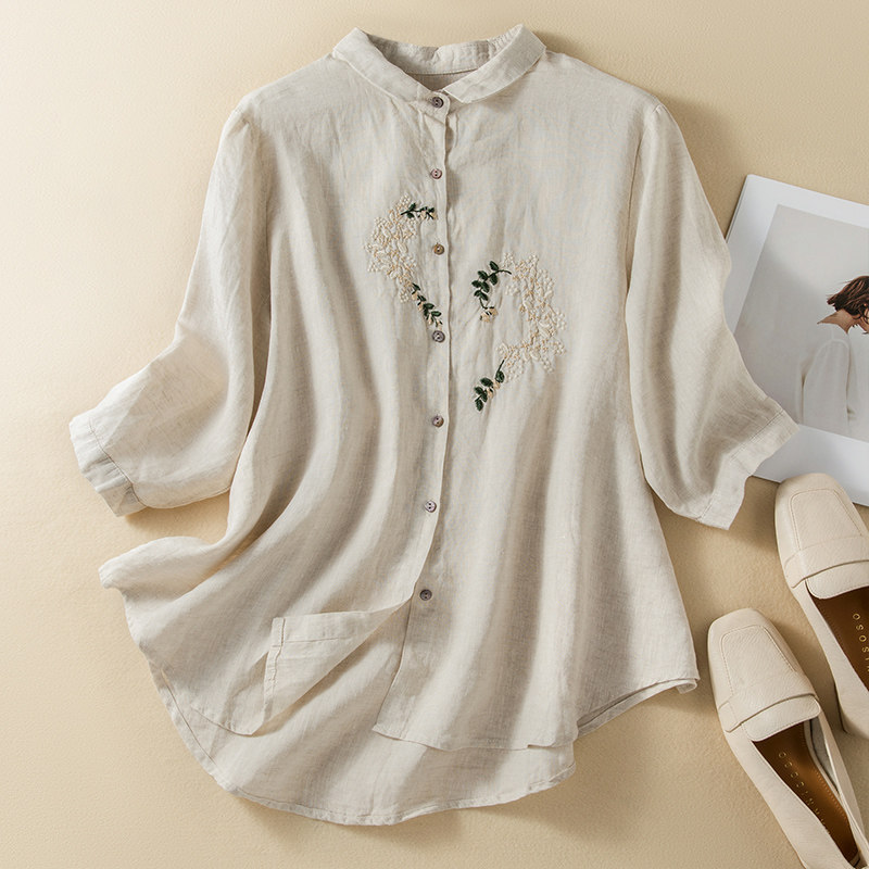 Элитная летняя рубашка, из хлопка и льна, большой размер