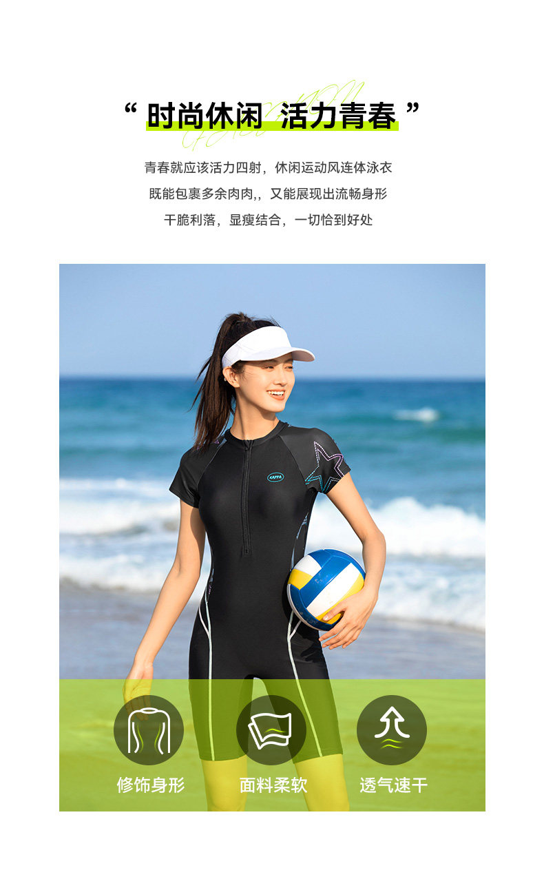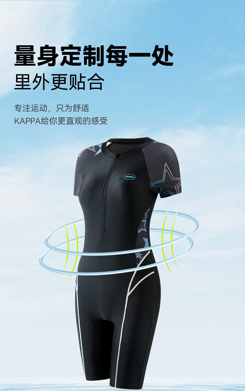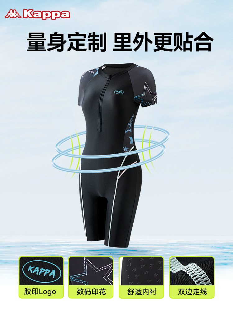 Каппа плавание женским фондом 2024 Новый большой большой весенний живот Профессиональные желудка Пять -точечные купальники