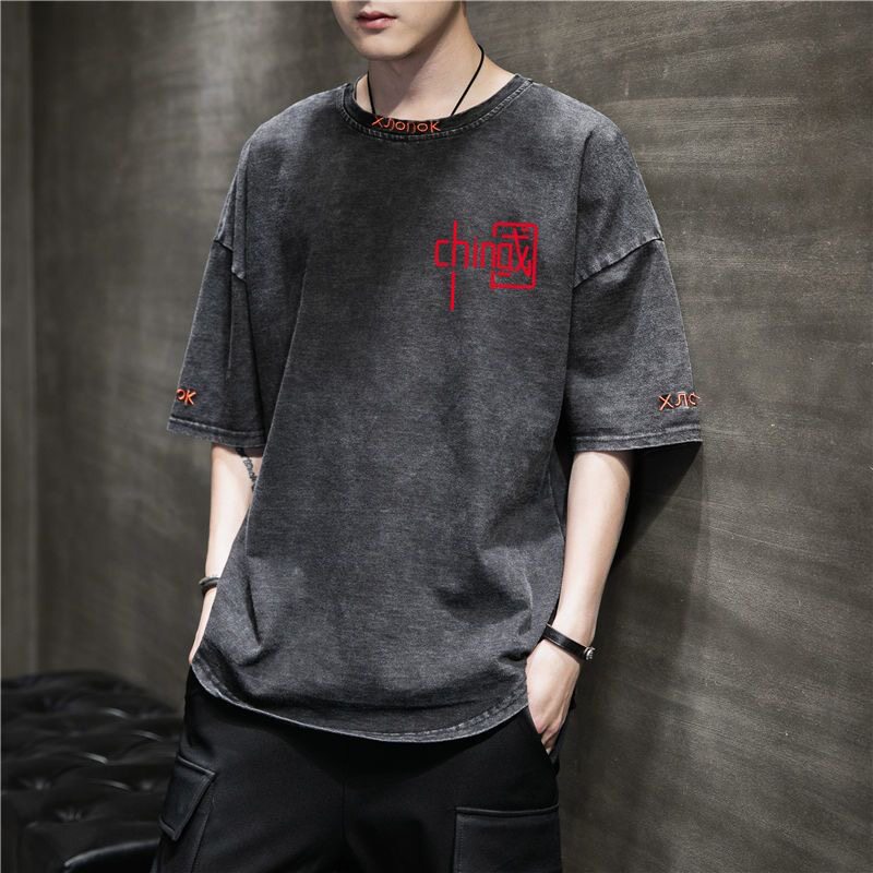 Tide, джинсовая юбка, трендовая летняя футболка с коротким рукавом, оверсайз, короткий рукав