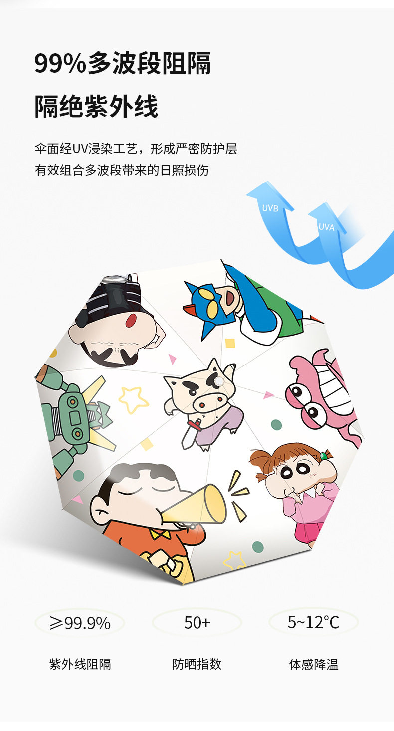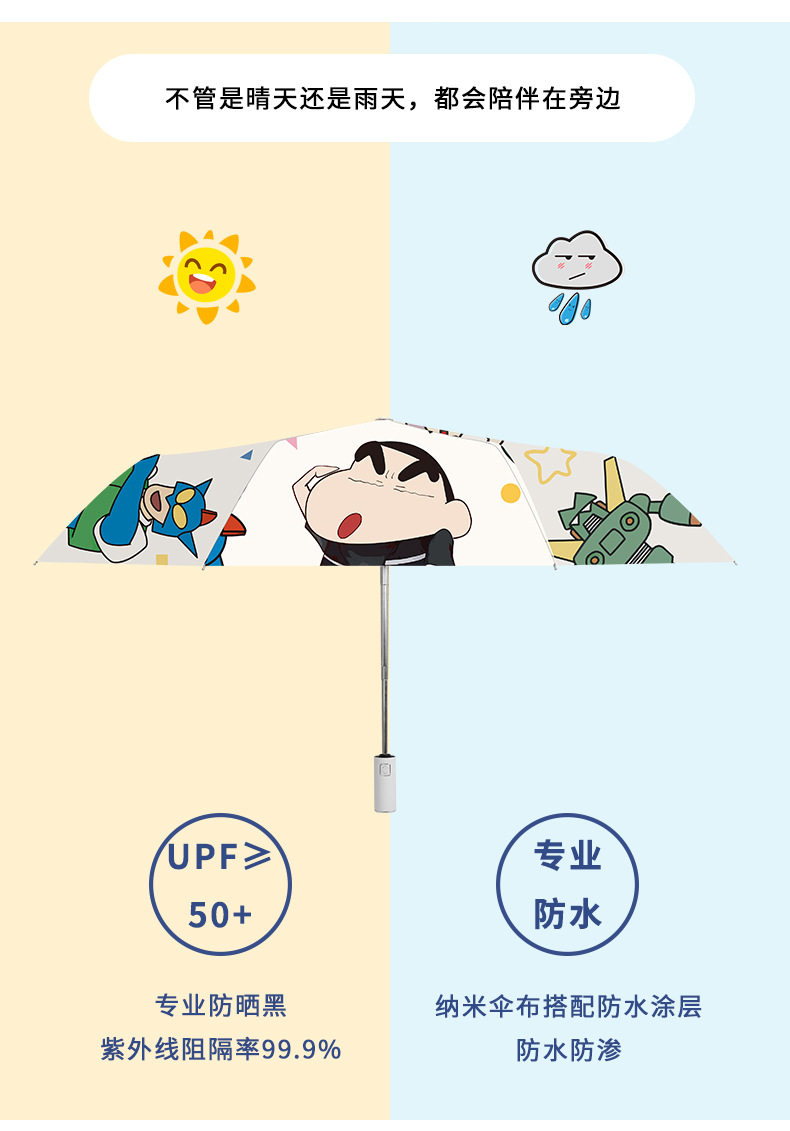 Автоматический зонтик, мультяшные мелки подходит для мужчин и женщин на солнечной энергии, полностью автоматический, защита от солнца, защита от ультрафиолета