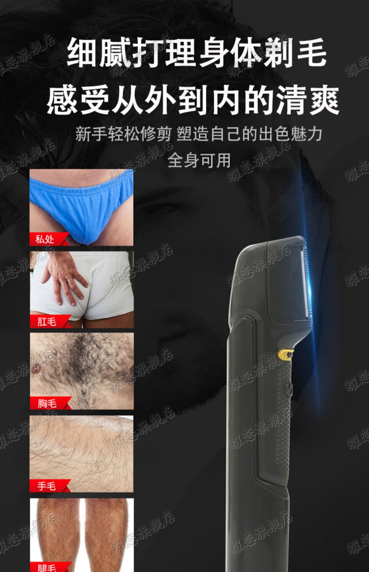 Японские лобковые волосы мужчины, обрезающие электрическую беглую шерсть, уединение мужского и женского соскребающего нож для яиц с подмышки, удаляя анальные волосы Бога