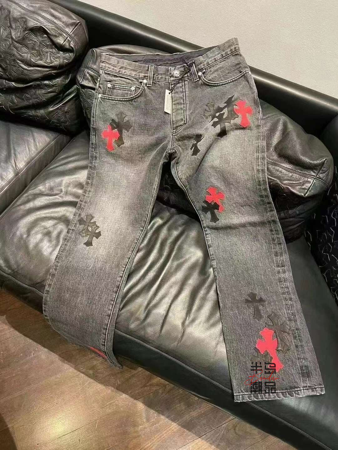 Gettlement Chrome Hearts Cloxy Черно -красная кожаная серебряная кепка Черные серые джинсы