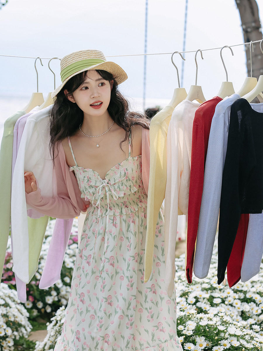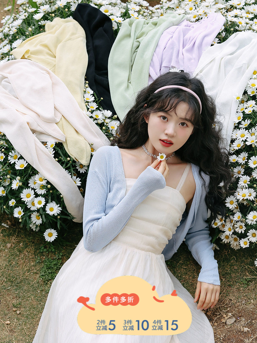 Короткий тонкий кардиган, куртка, платье, французский стиль, подходит для подростков, защита от солнца