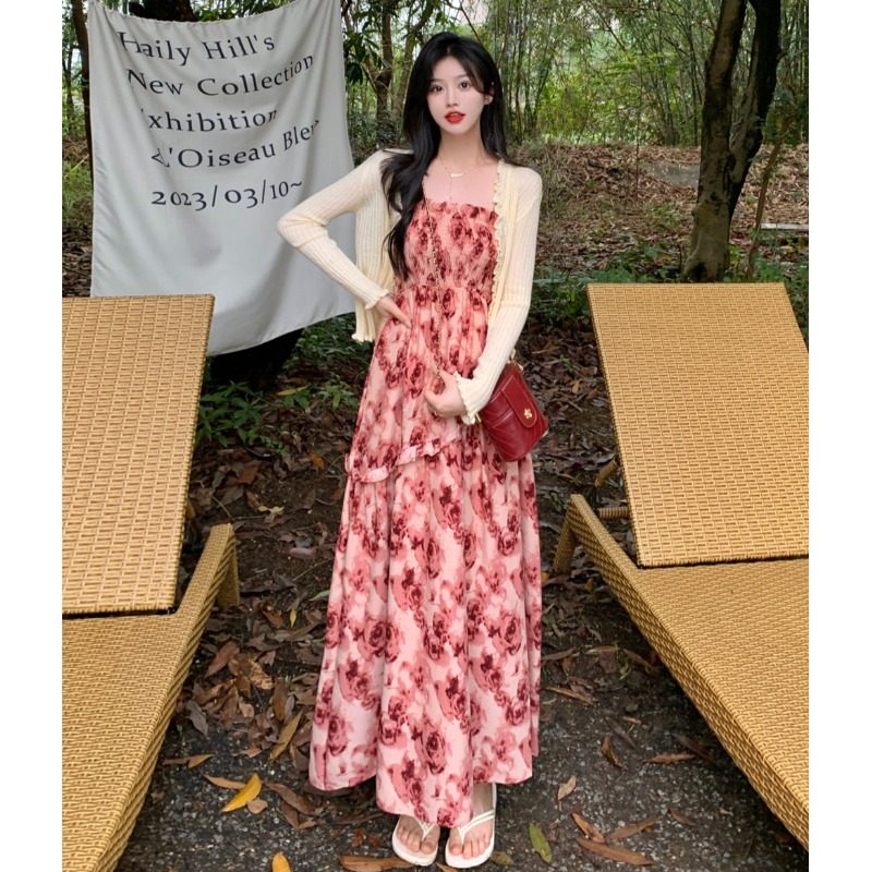 Платье, приталенный корсет, комплект, большой размер, французский стиль, цветочный принт, А-силуэт