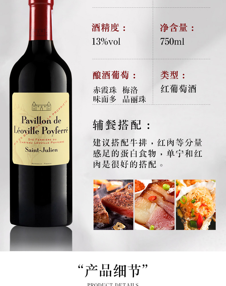 Самооперационная поместья Bofei Manor Red Wine French Bottle Импортирована сухое красное вино Leoville Poyferrere