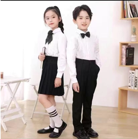 - Белые длинные рукава+тибетские синие брюки+черный галстук