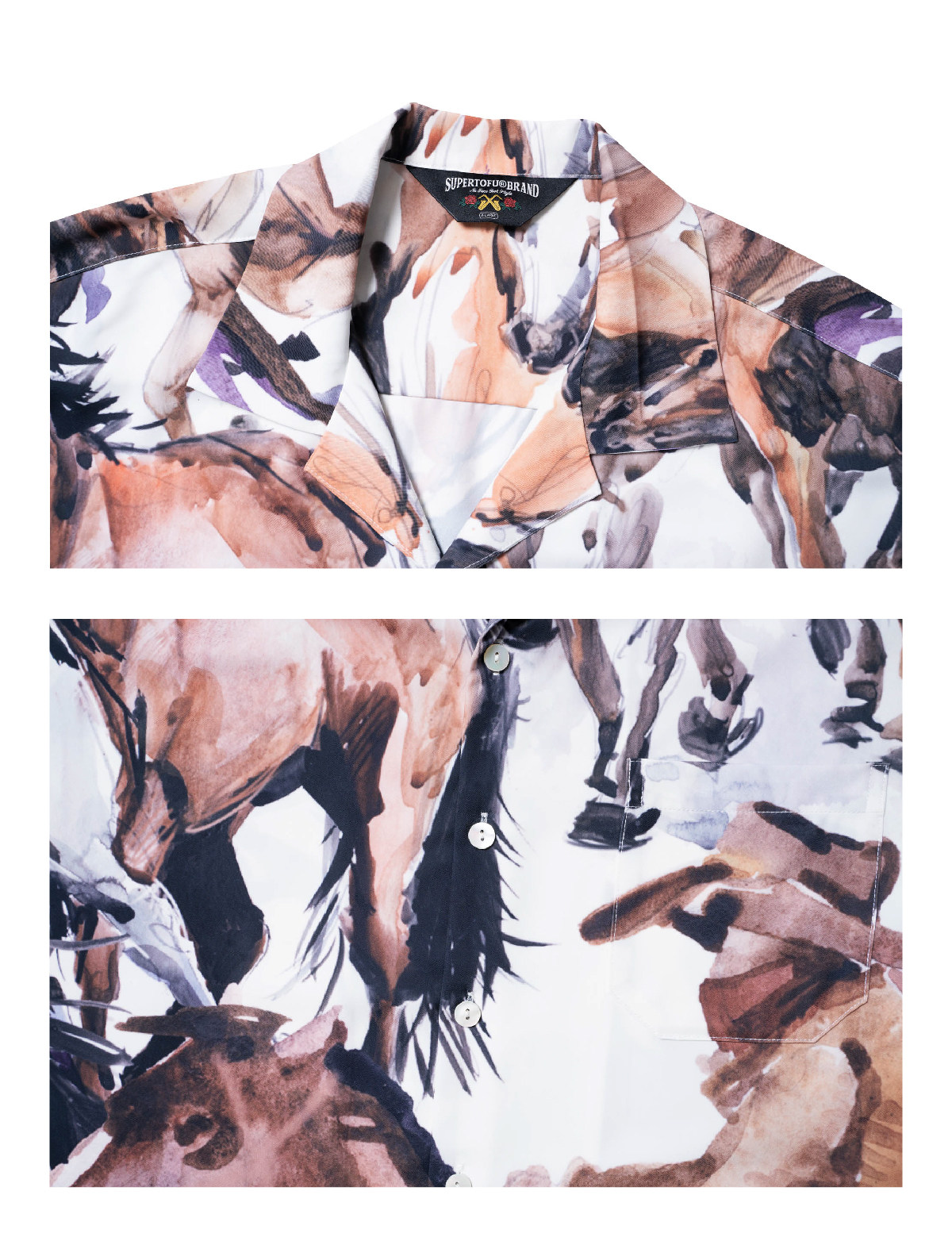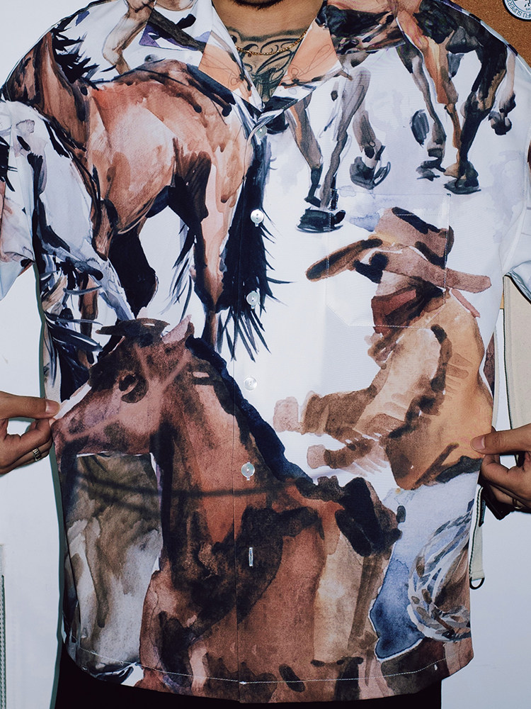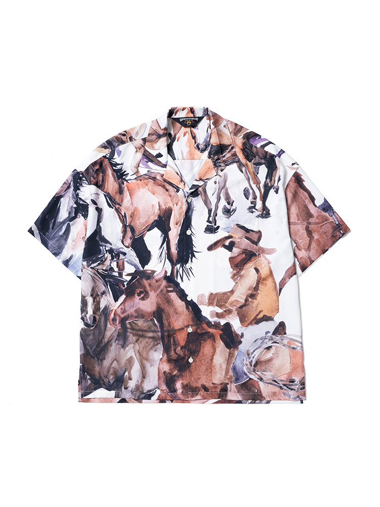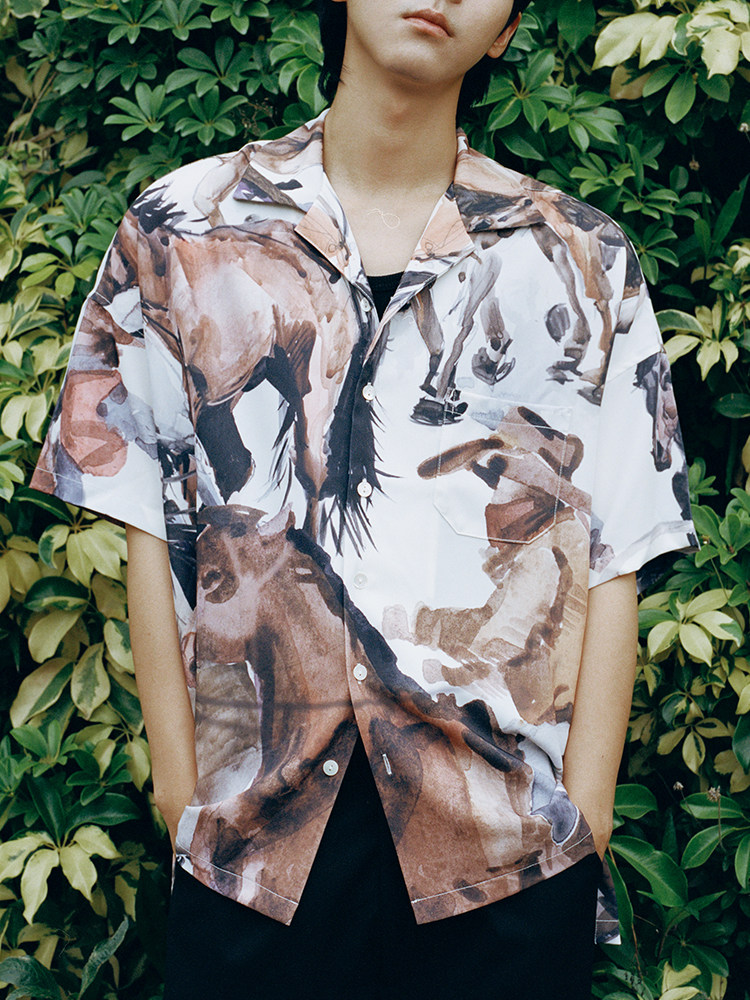 SUPERTOFU (SPTF) SS23 Джинсовая масляная живопись стиль стиль гавайской алоховой рубашка Aloha Short -Sleeed