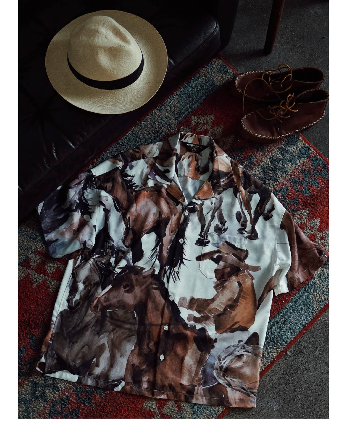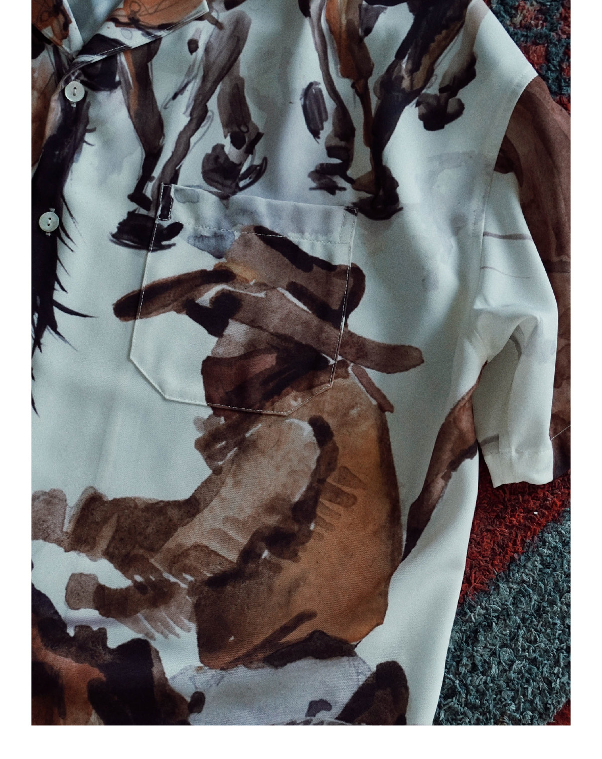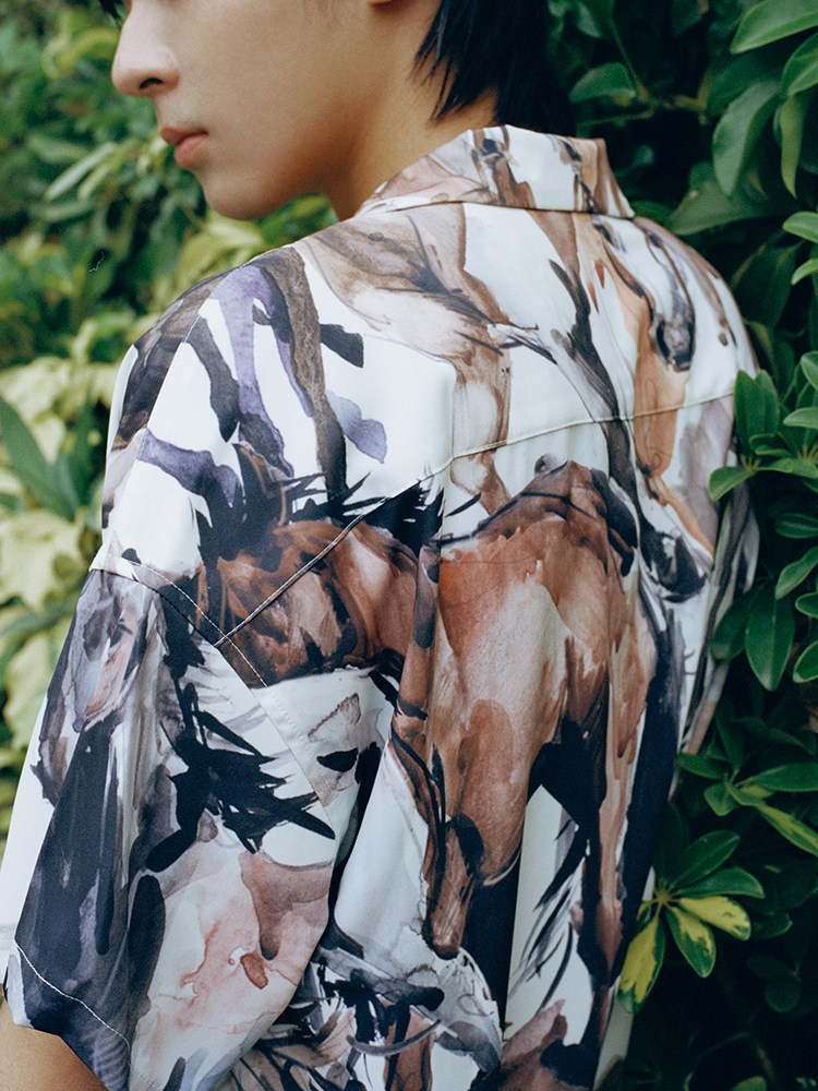 SUPERTOFU (SPTF) SS23 Джинсовая масляная живопись стиль стиль гавайской алоховой рубашка Aloha Short -Sleeed