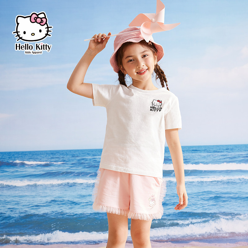 Hello Kitty, летняя мультяшная футболка с коротким рукавом с круглым воротником, детская одежда, подходит для подростков