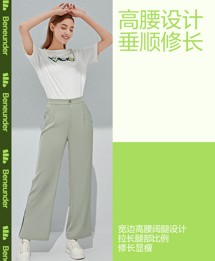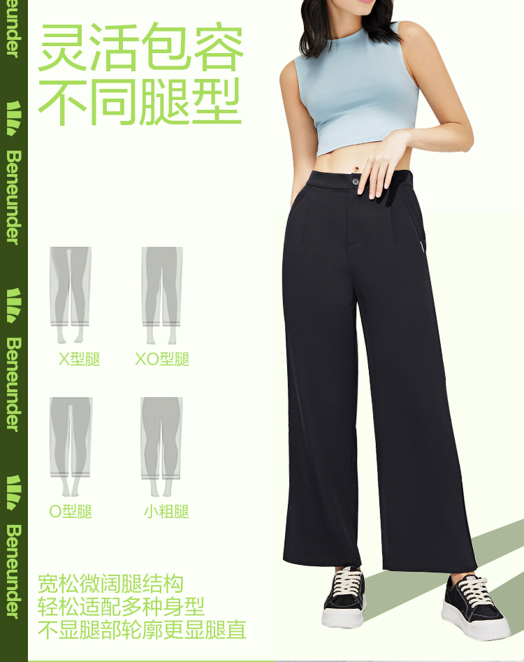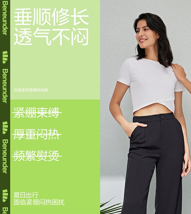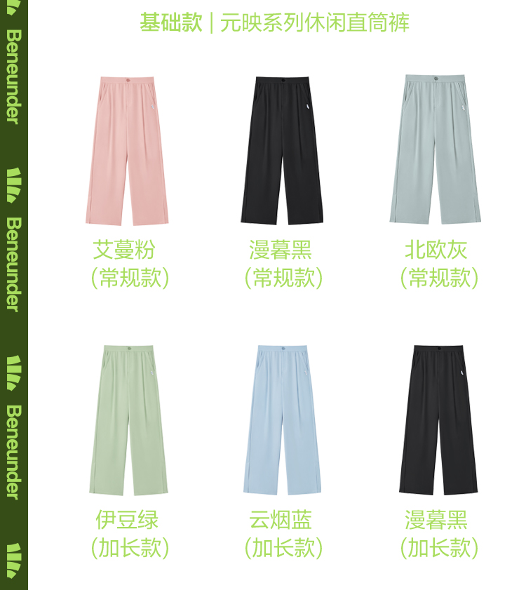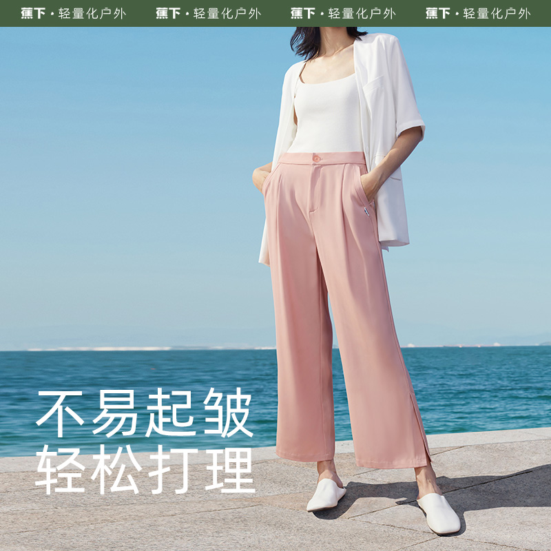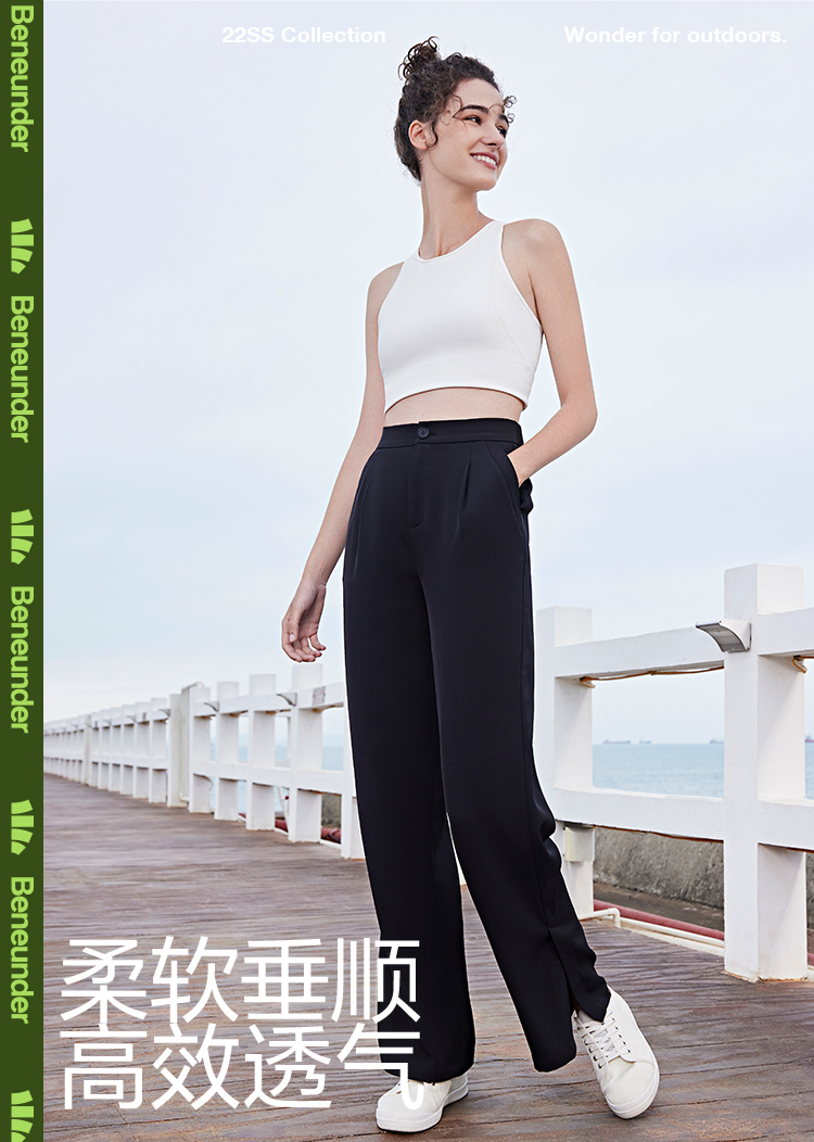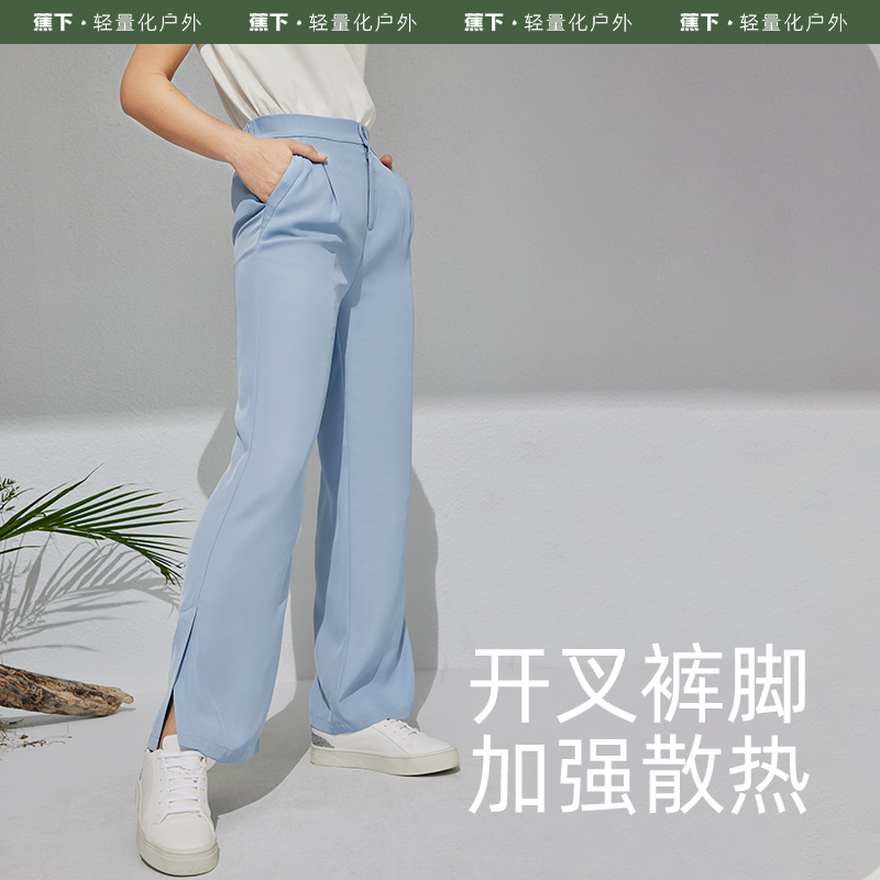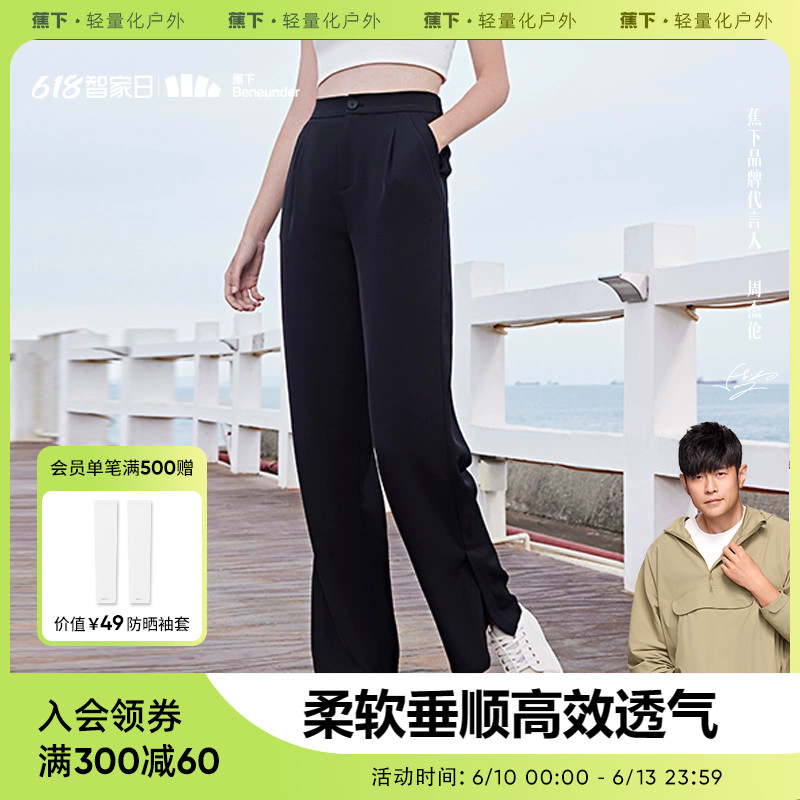 蕉下 Костюм, черные штаны, высокая талия, защита от солнца, свободный прямой крой