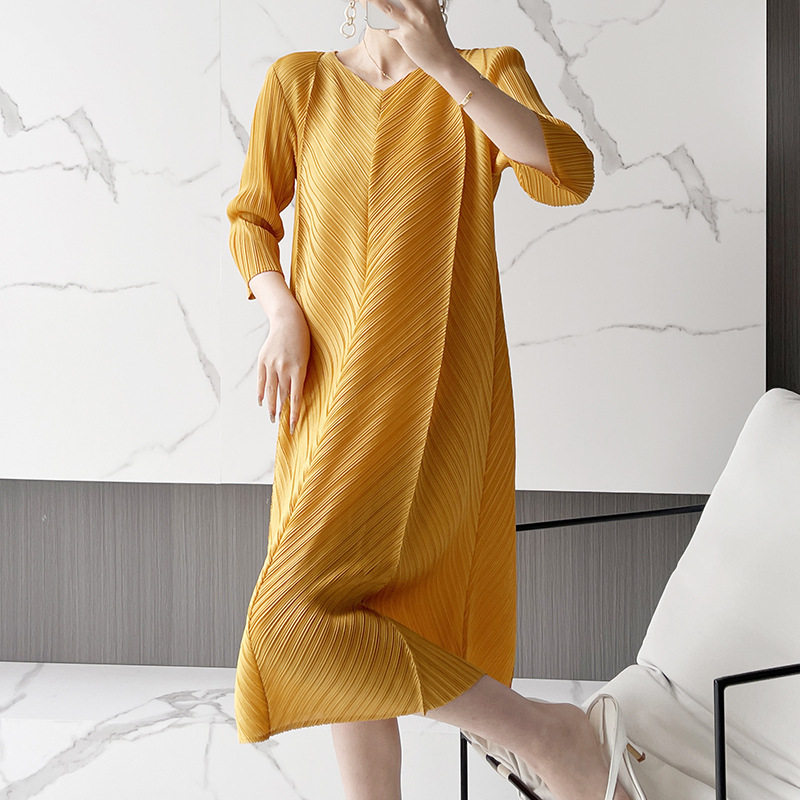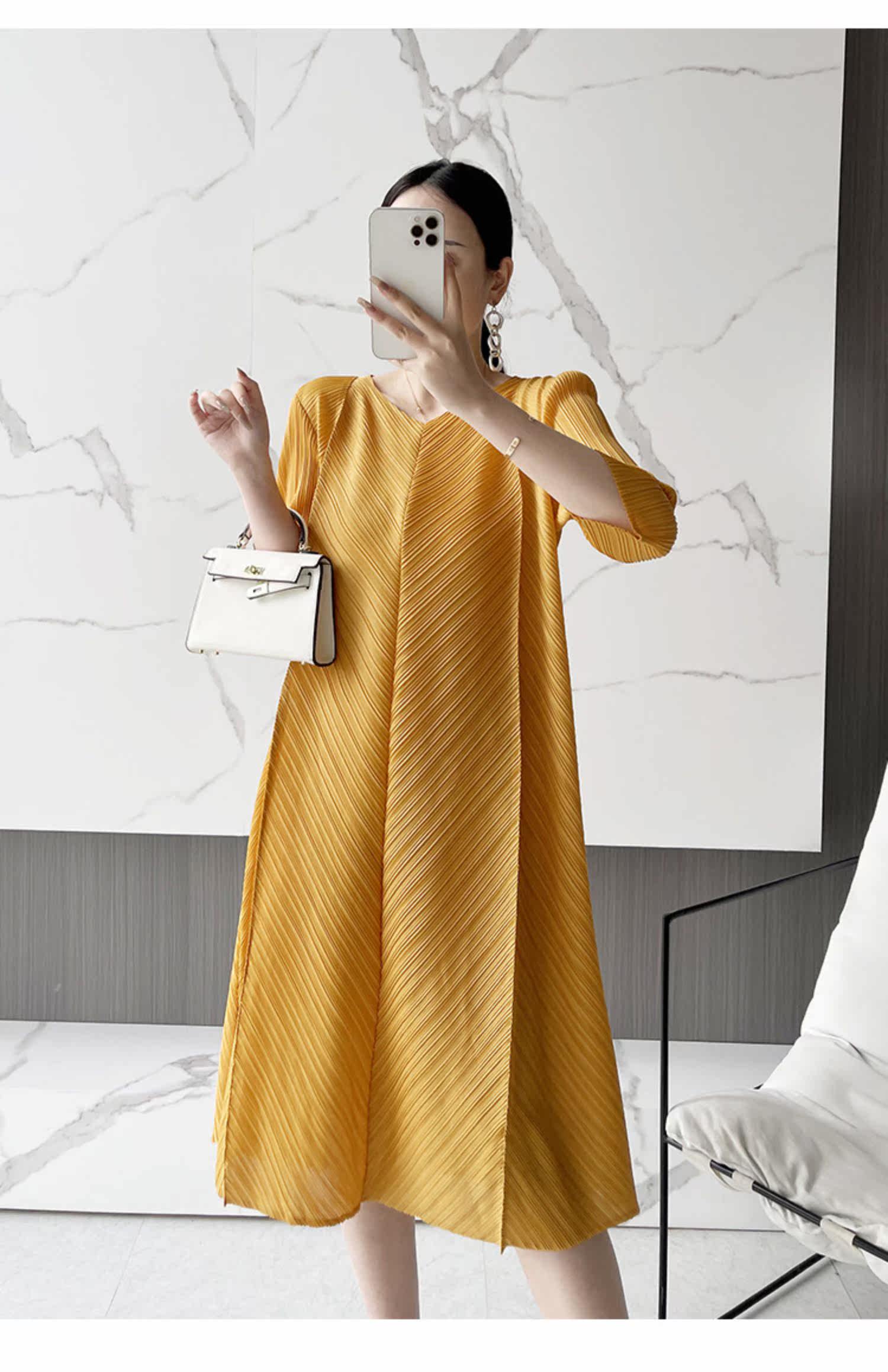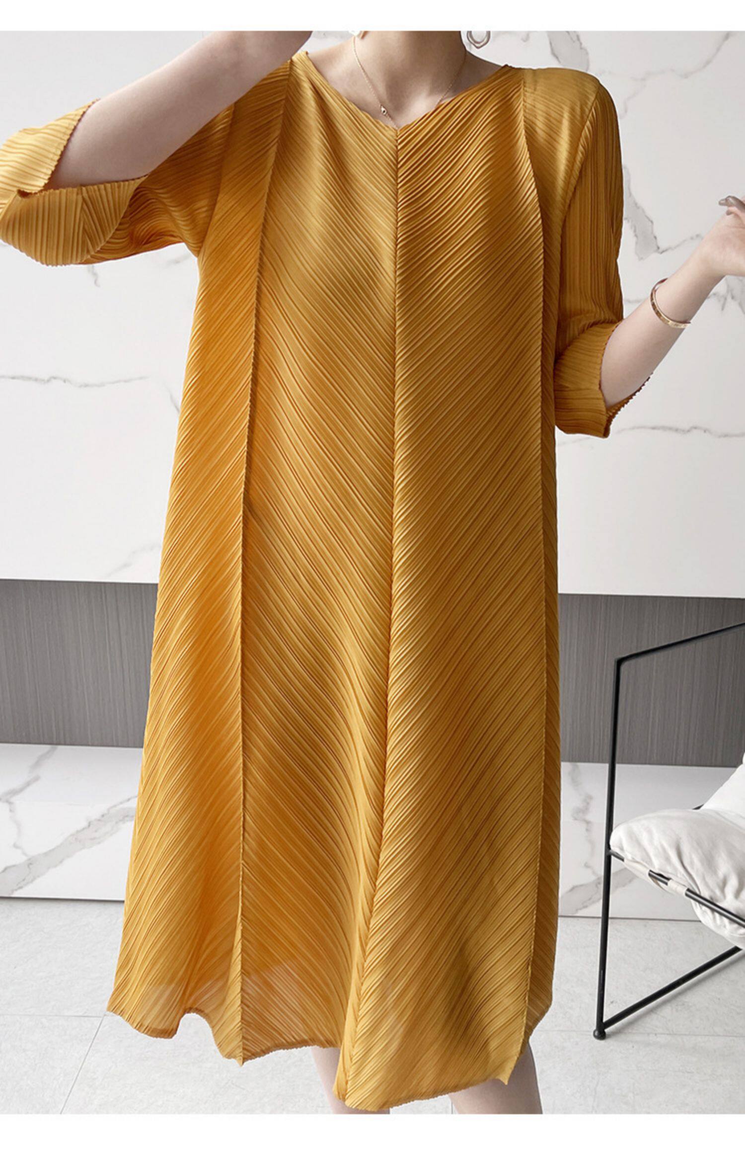 Платье большого размера со складками, лето 2024, новинка лета 2024, прикрывающая живот, модная плиссированная свободная весенняя юбка мм.