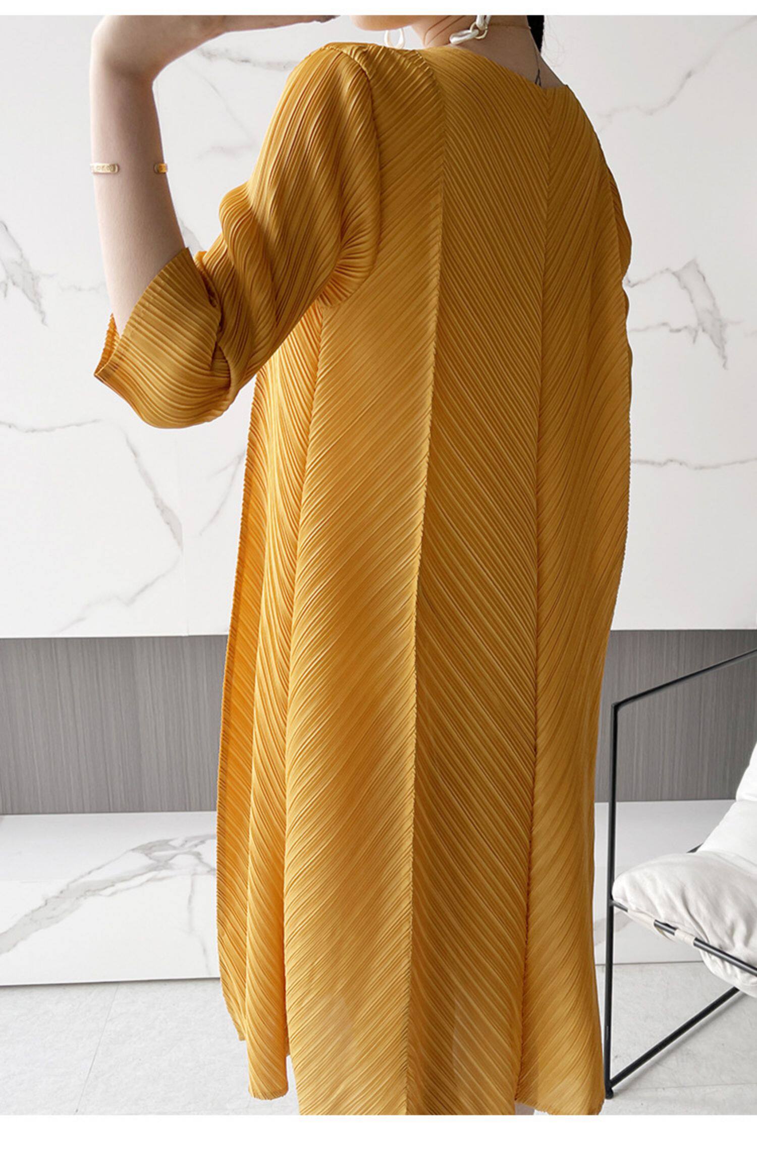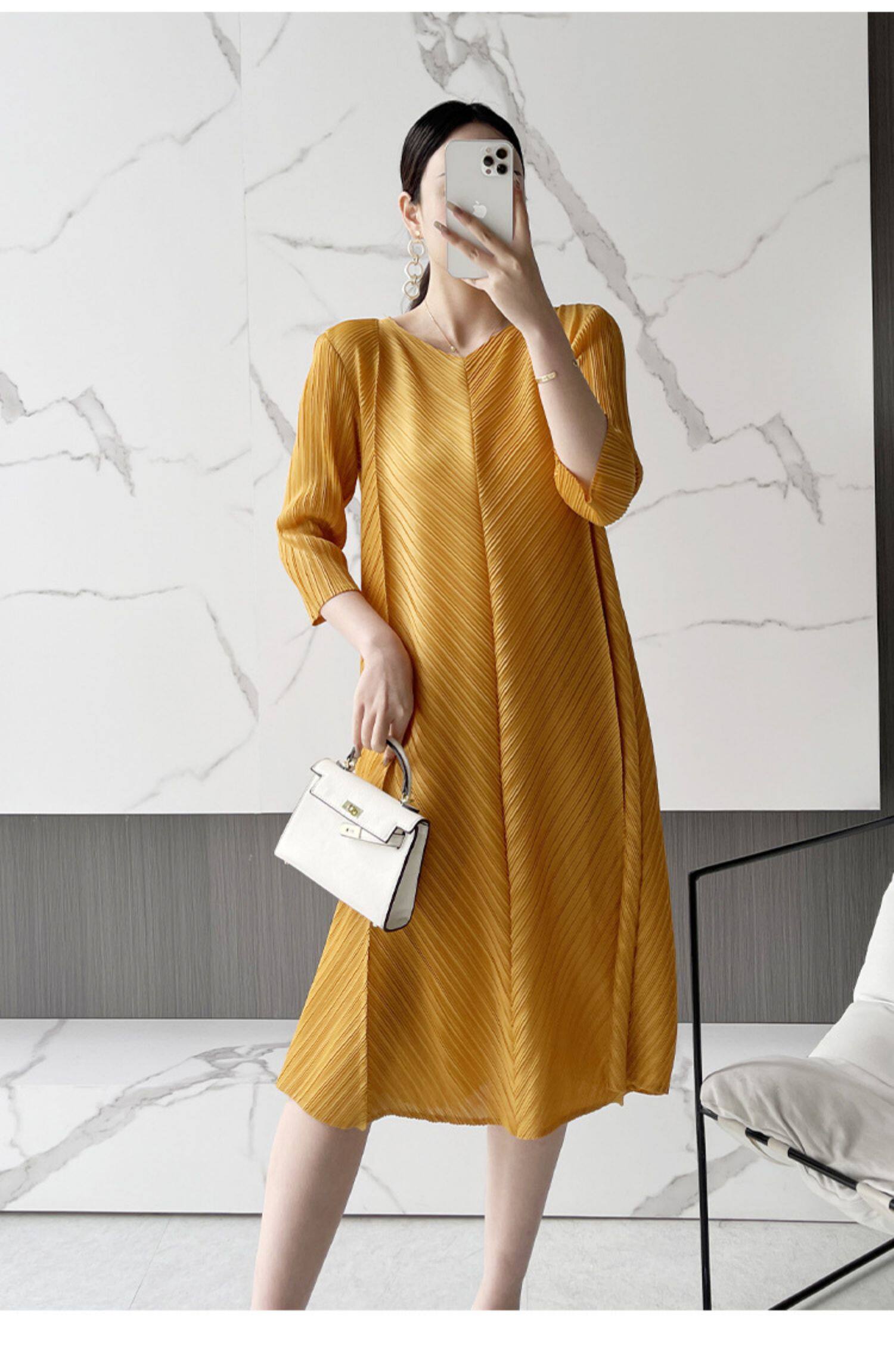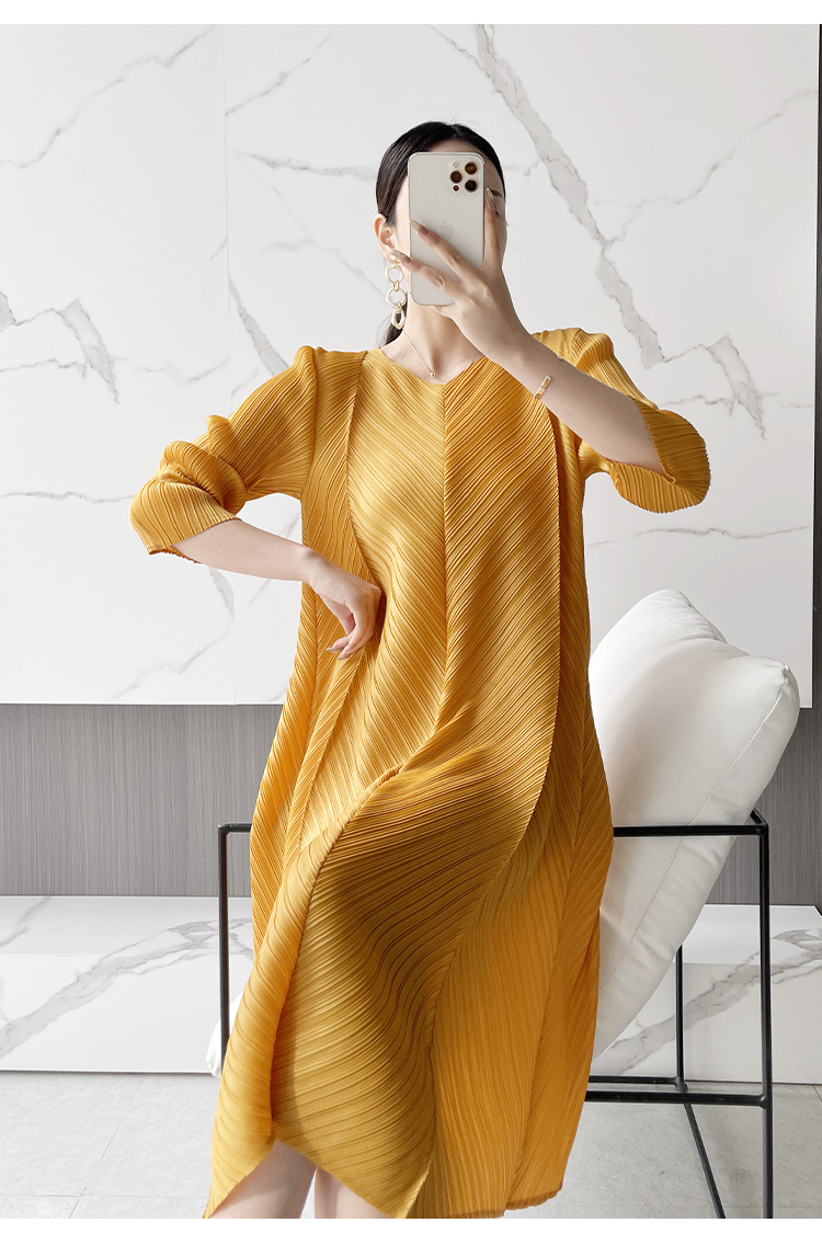 Платье большого размера со складками, лето 2024, новинка лета 2024, прикрывающая живот, модная плиссированная свободная весенняя юбка мм.