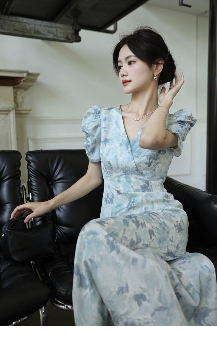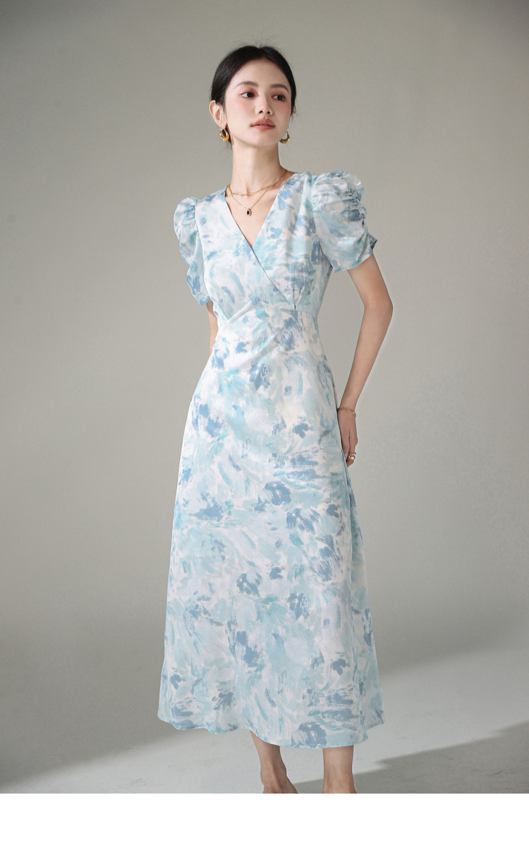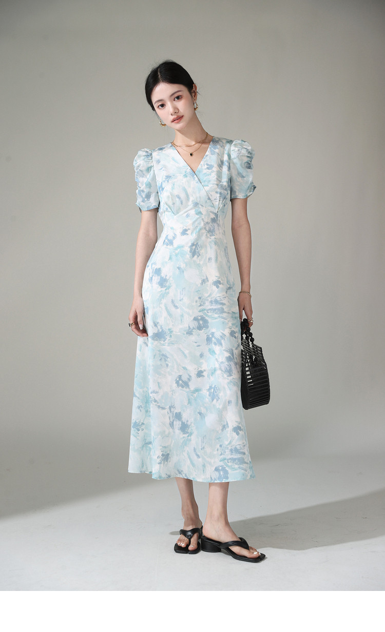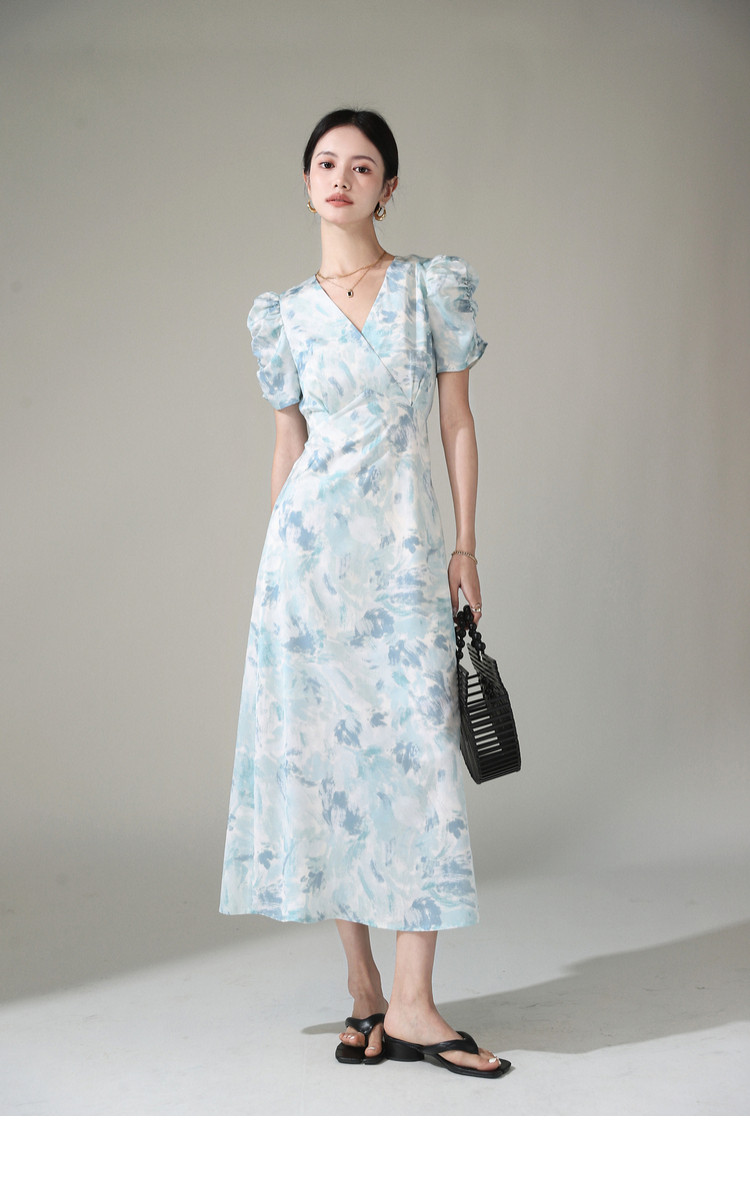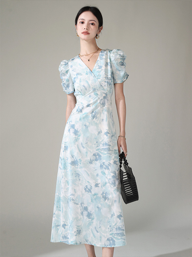Летнее платье, длинная юбка, А-силуэт, V-образный вырез, цветочный принт