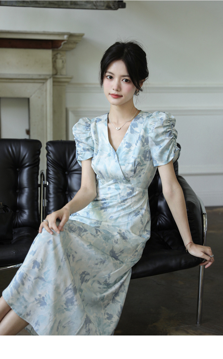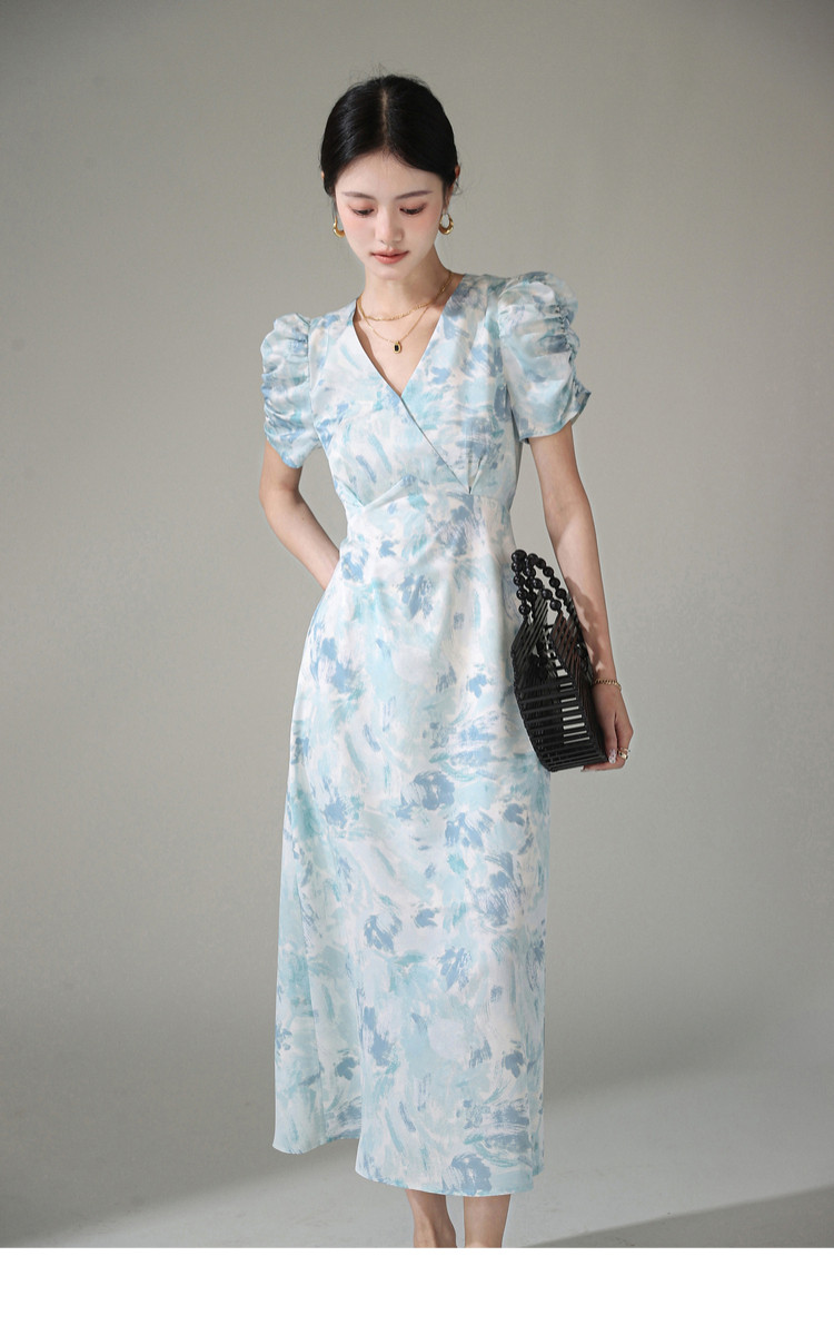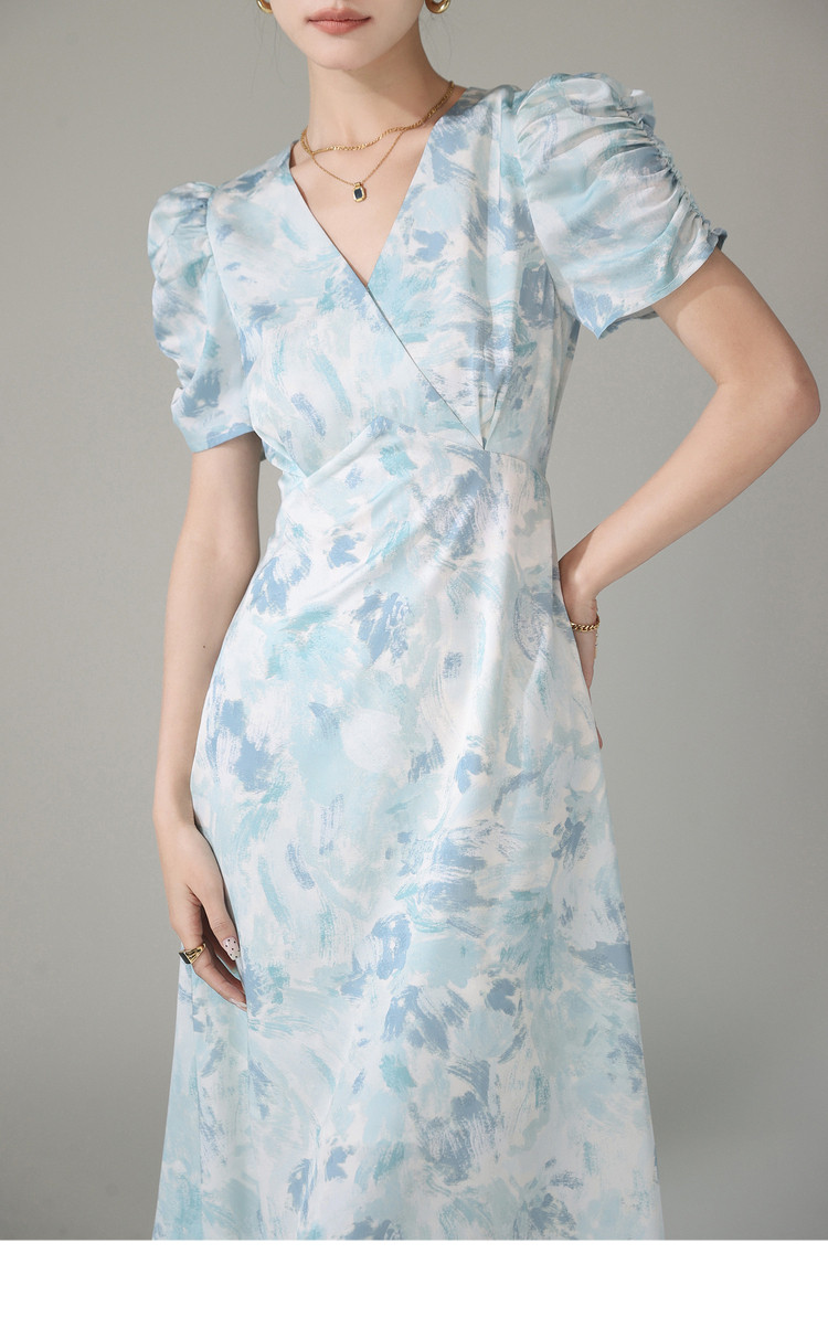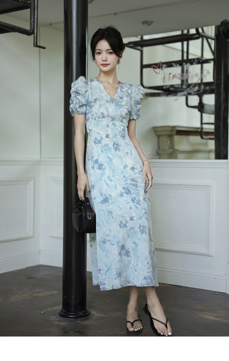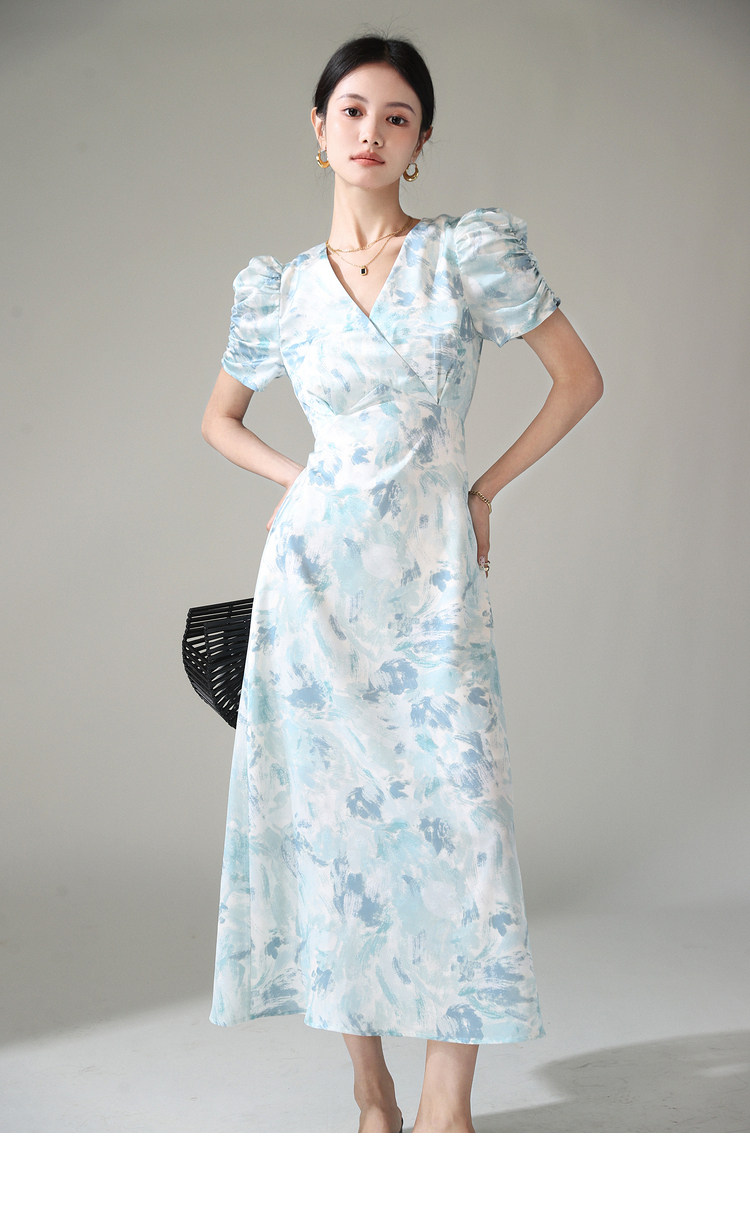 Летнее платье, длинная юбка, А-силуэт, V-образный вырез, цветочный принт
