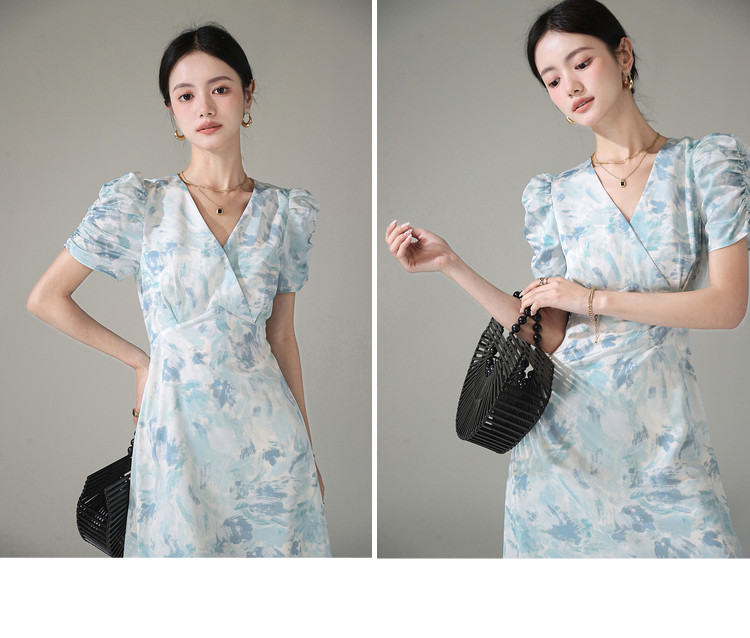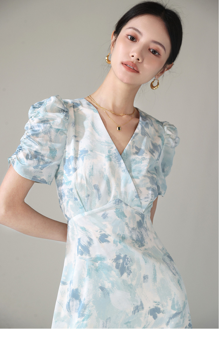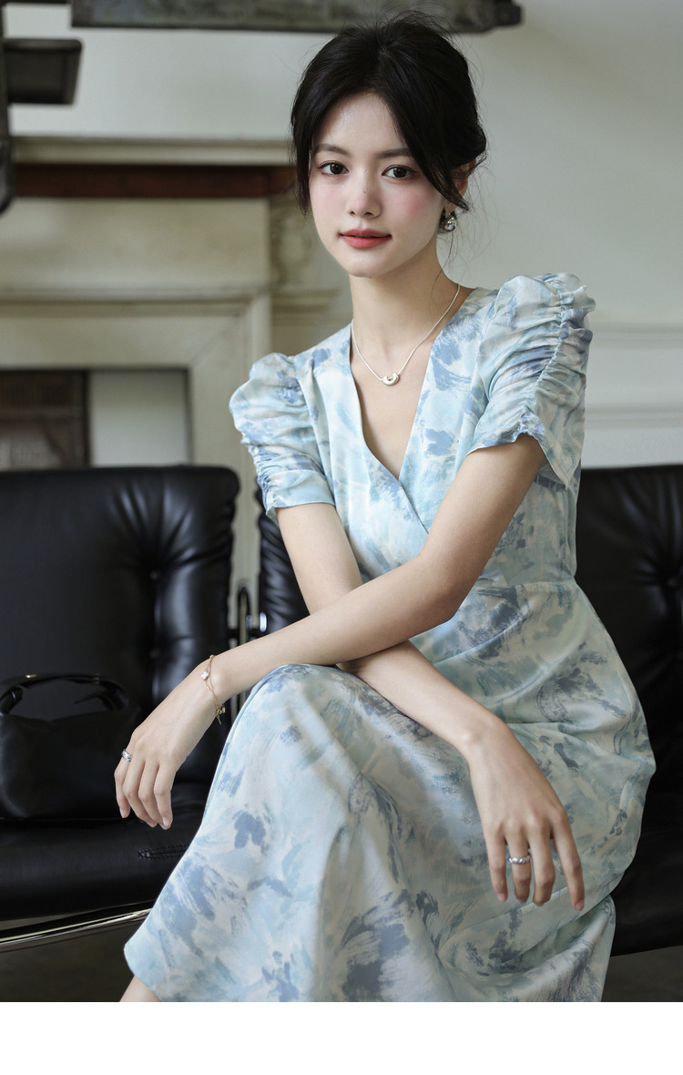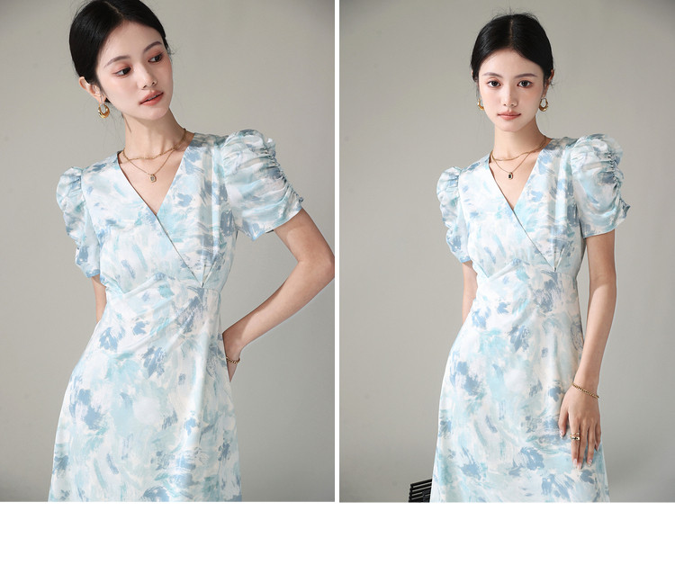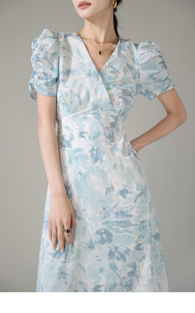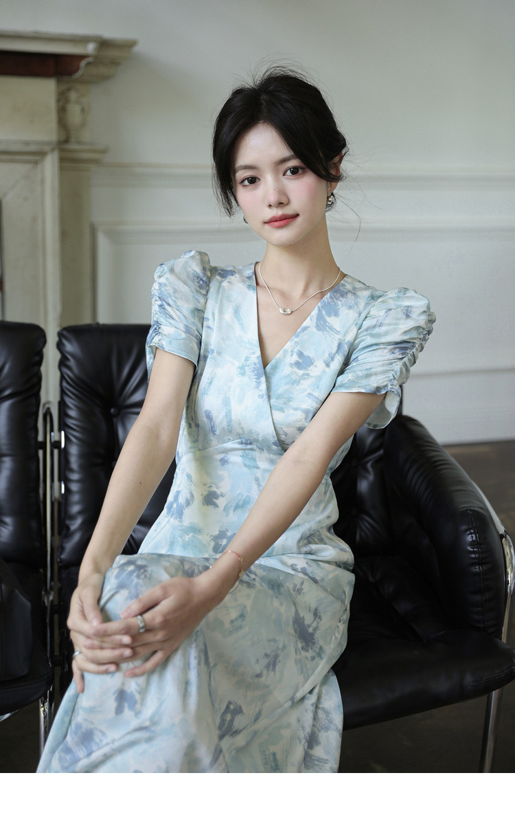 Летнее платье, длинная юбка, А-силуэт, V-образный вырез, цветочный принт