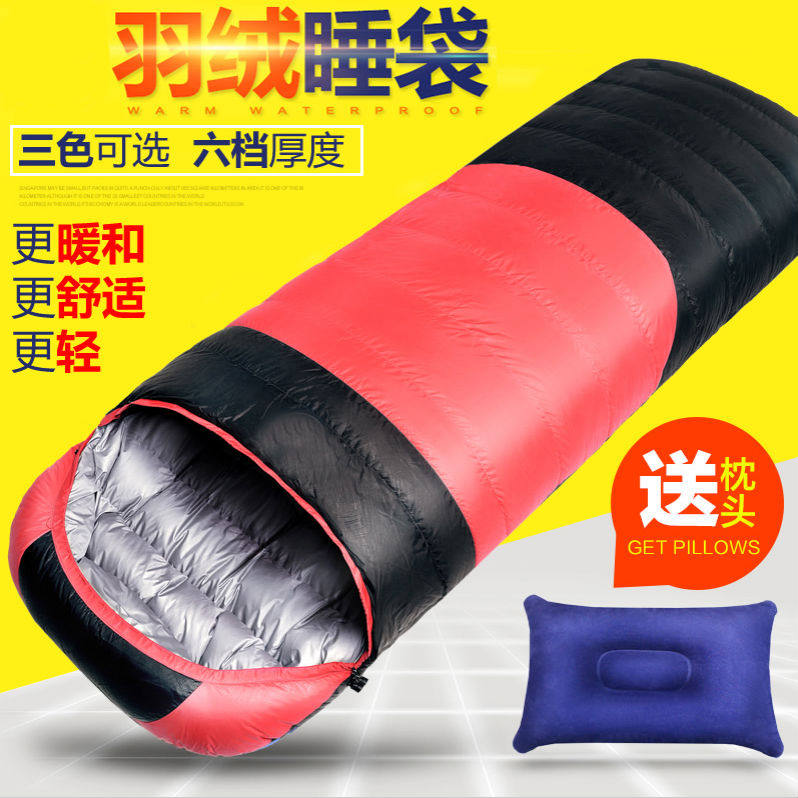 Дорожный зимний утепленный спальный мешок с пухом для взрослых для кемпинга