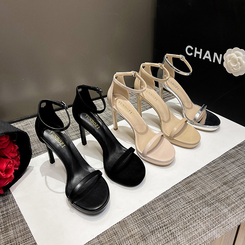 Черная сексуальная обувь на высоком каблуке, летние сандалии, популярно в интернете, 2024 года