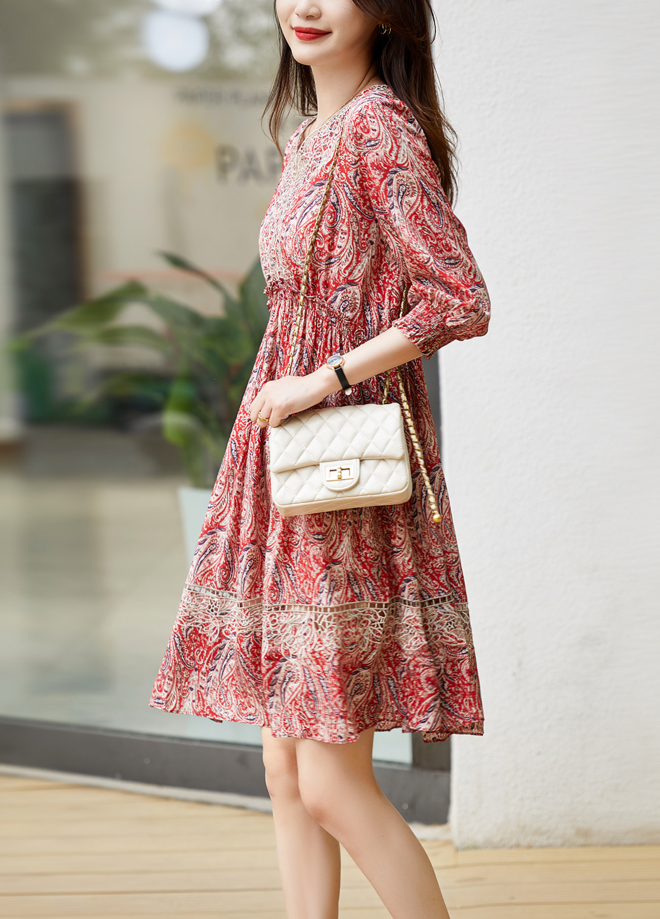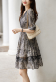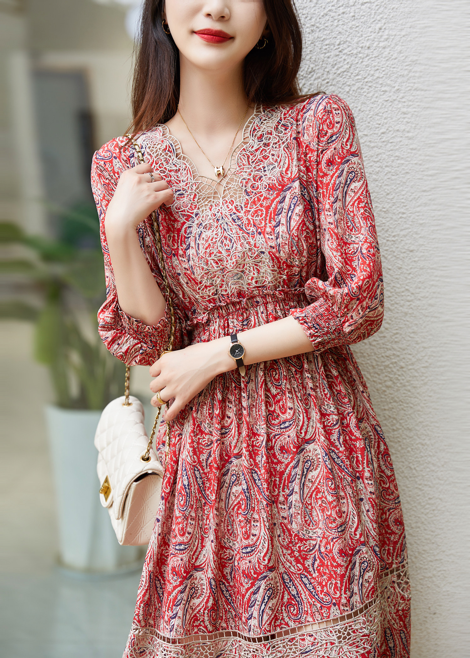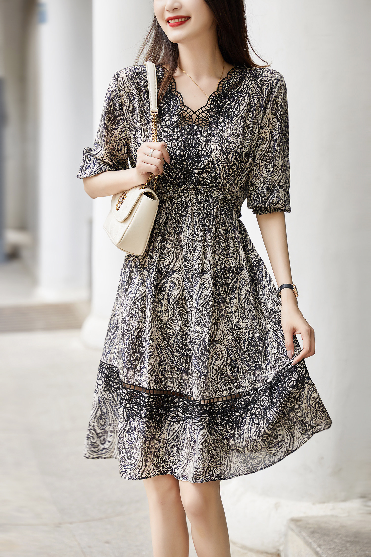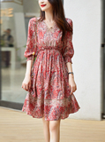 Ретро шелковое платье, юбка, V-образный вырез
