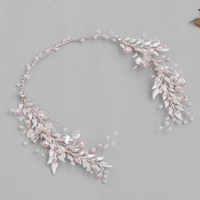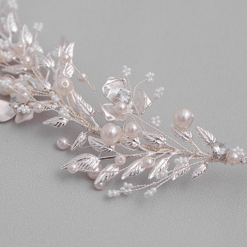 Серебряный цвет листовой жемчужной повязкой повязкой для свадебных волос