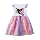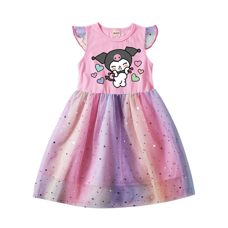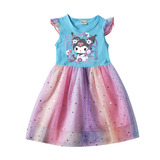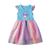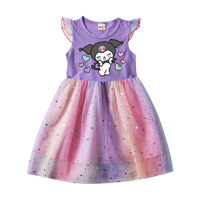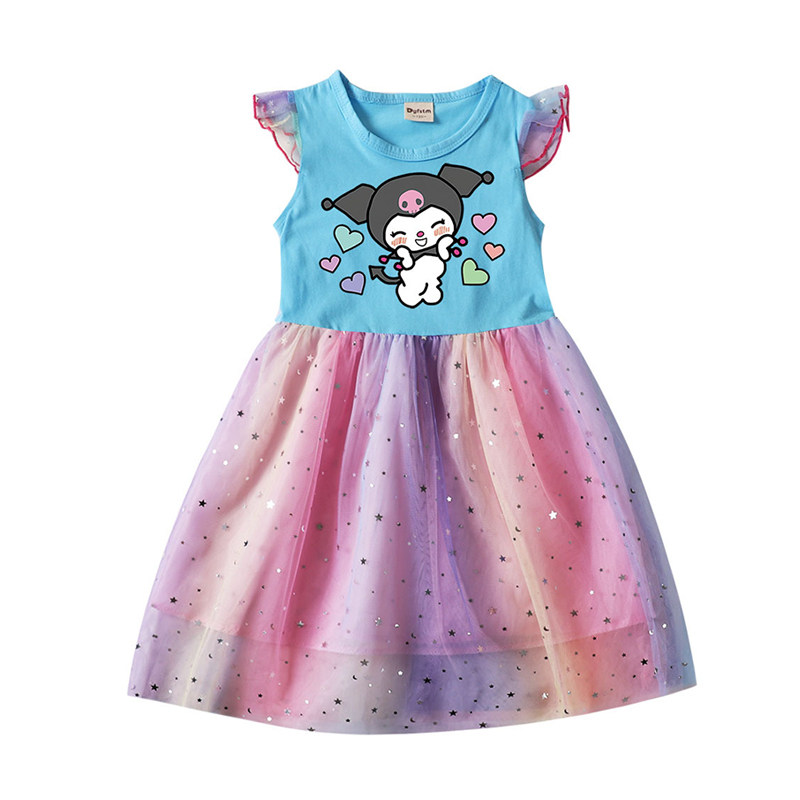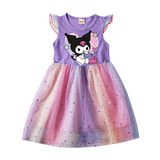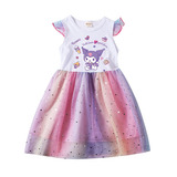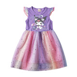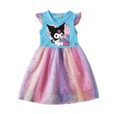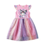 Девочки летающие рукав хлопковые сетки платья летняя маленькая и маленькая легкая юбка мультфильм куроми звезда Куроми
