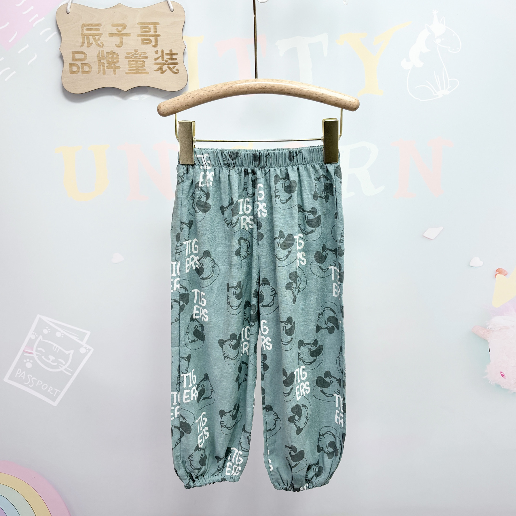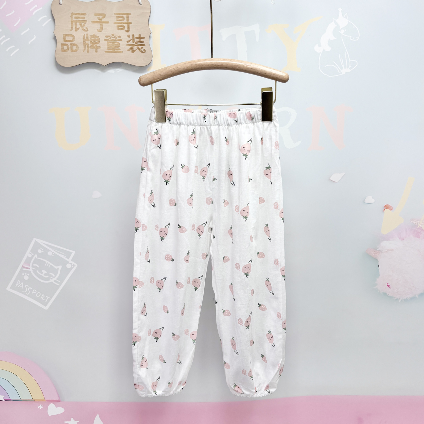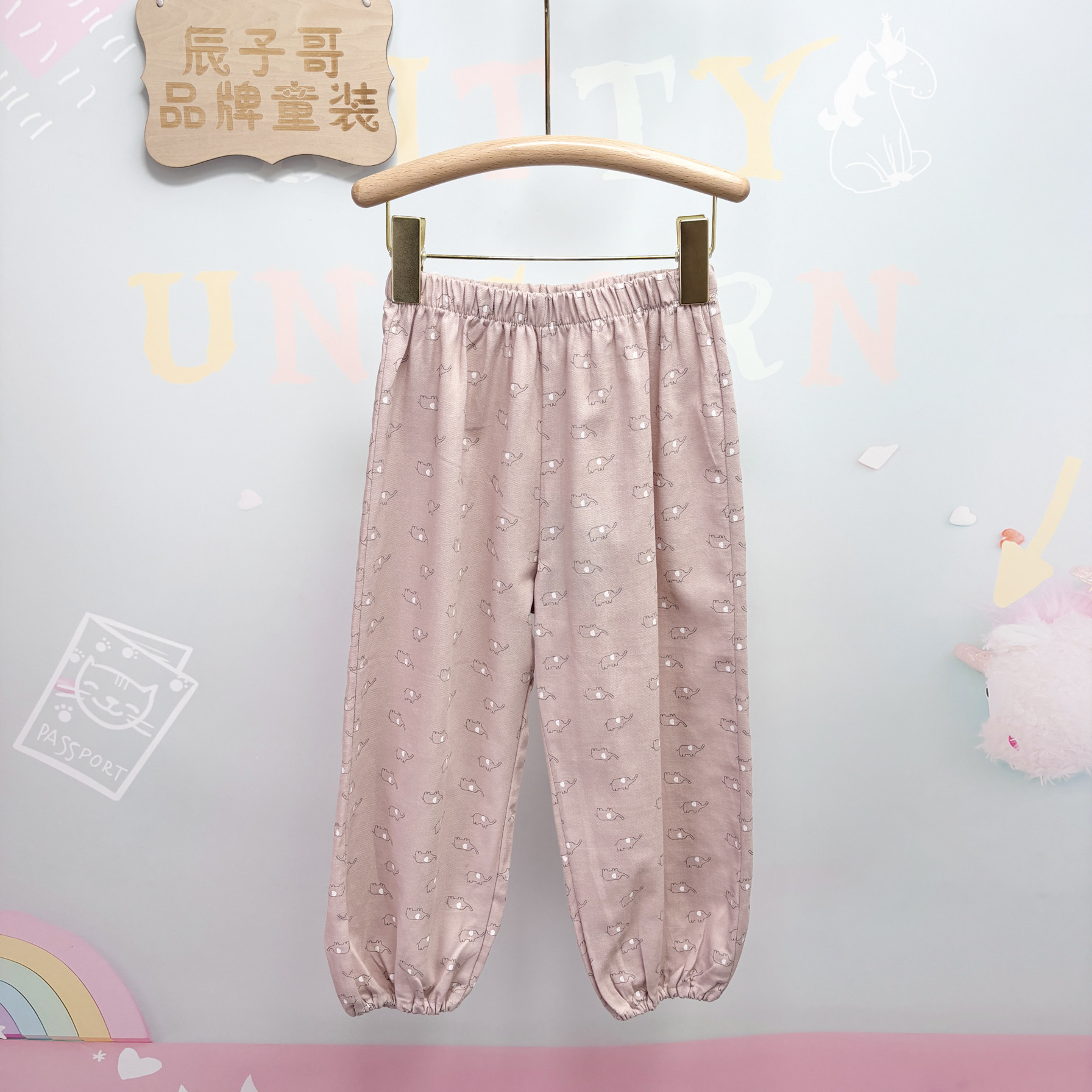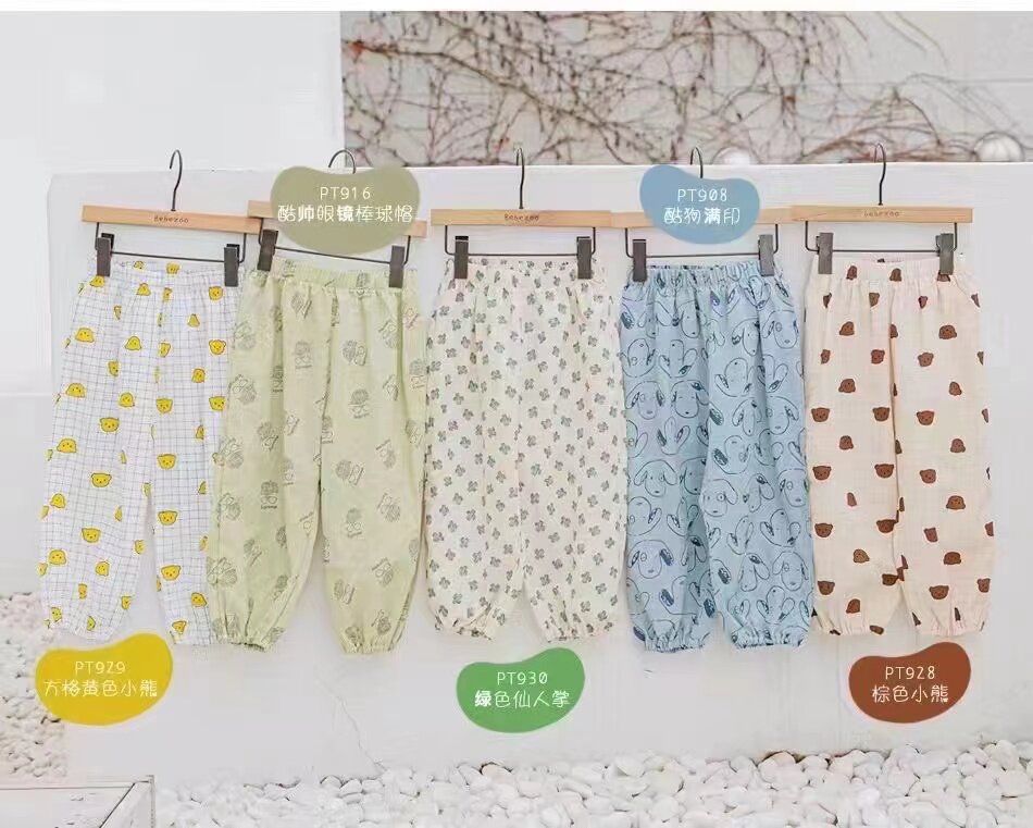 [Bebe韩国品牌贝贝祖夏款全棉男女童9分防蚊裤100-140]