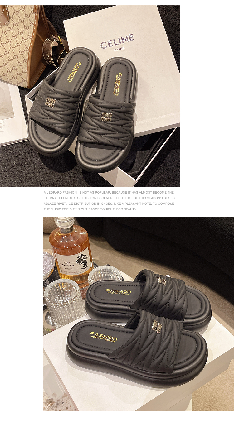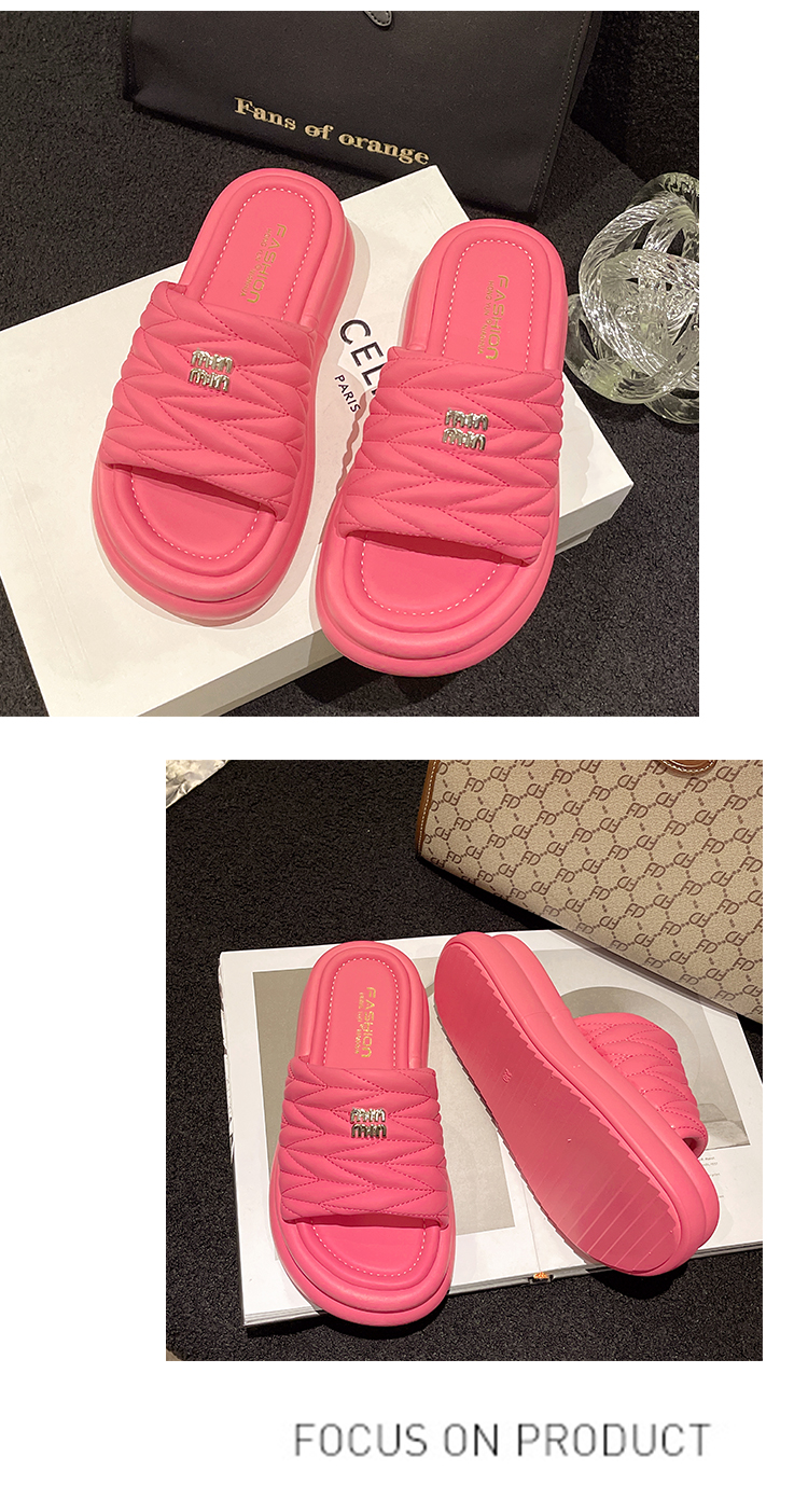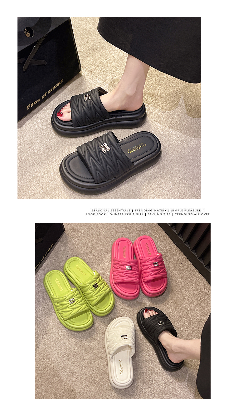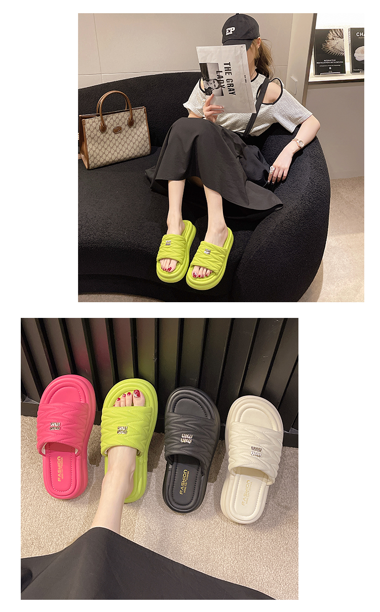Нескользящие тапочки на платформе, летняя обувь, небольшие дизайнерские пляжные слайдеры, французский стиль, коллекция 2023, тренд сезона, популярно в интернете