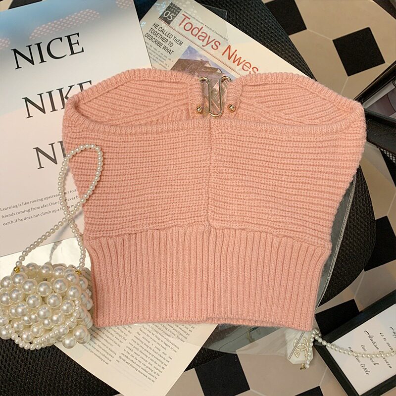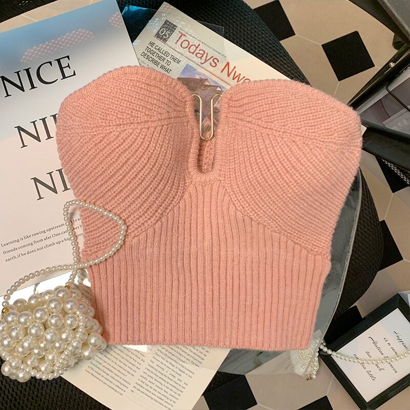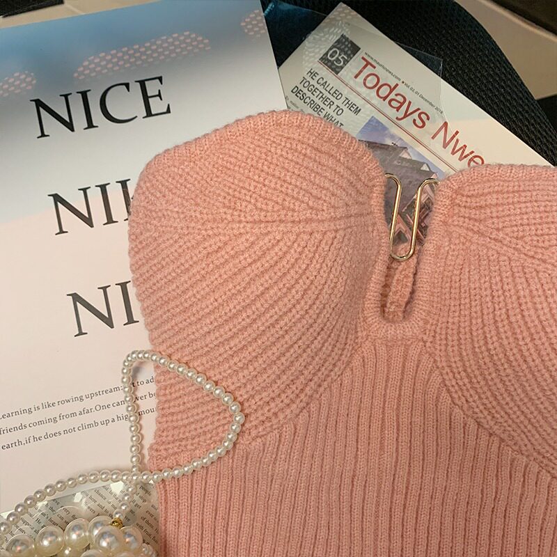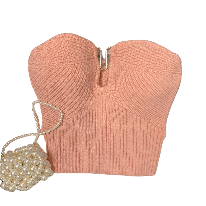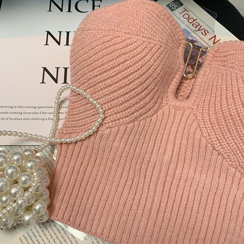 Розовый трикотажный топ без лямок, брошь, бюстгальтер-топ, майка топ, делается под заказ, красивая спина