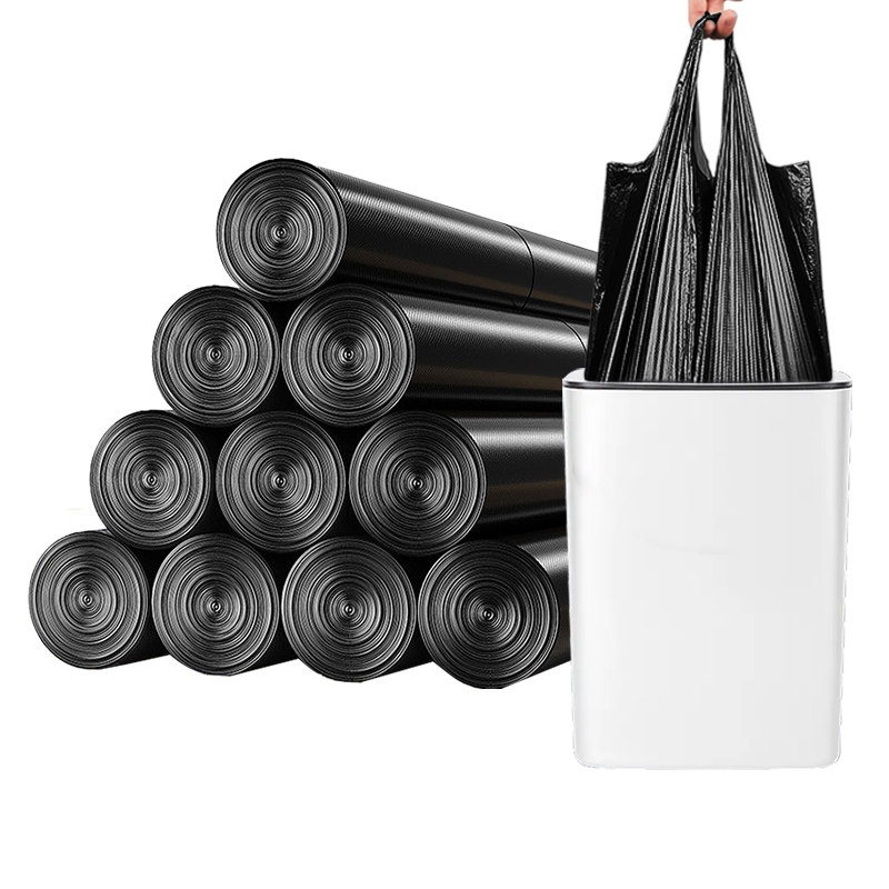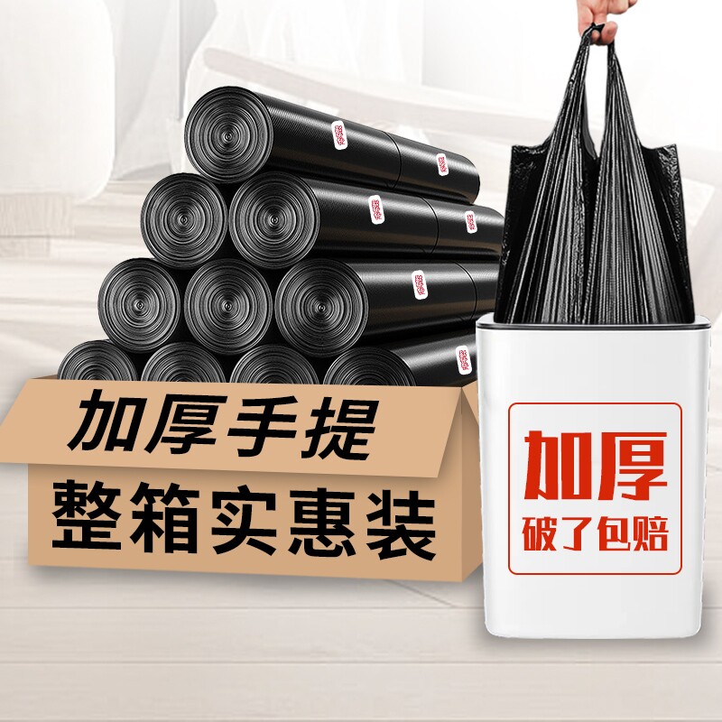 Портативный мусорный мешок для домашнего использования, черный жилет для коммерческого использования, увеличенная толщина