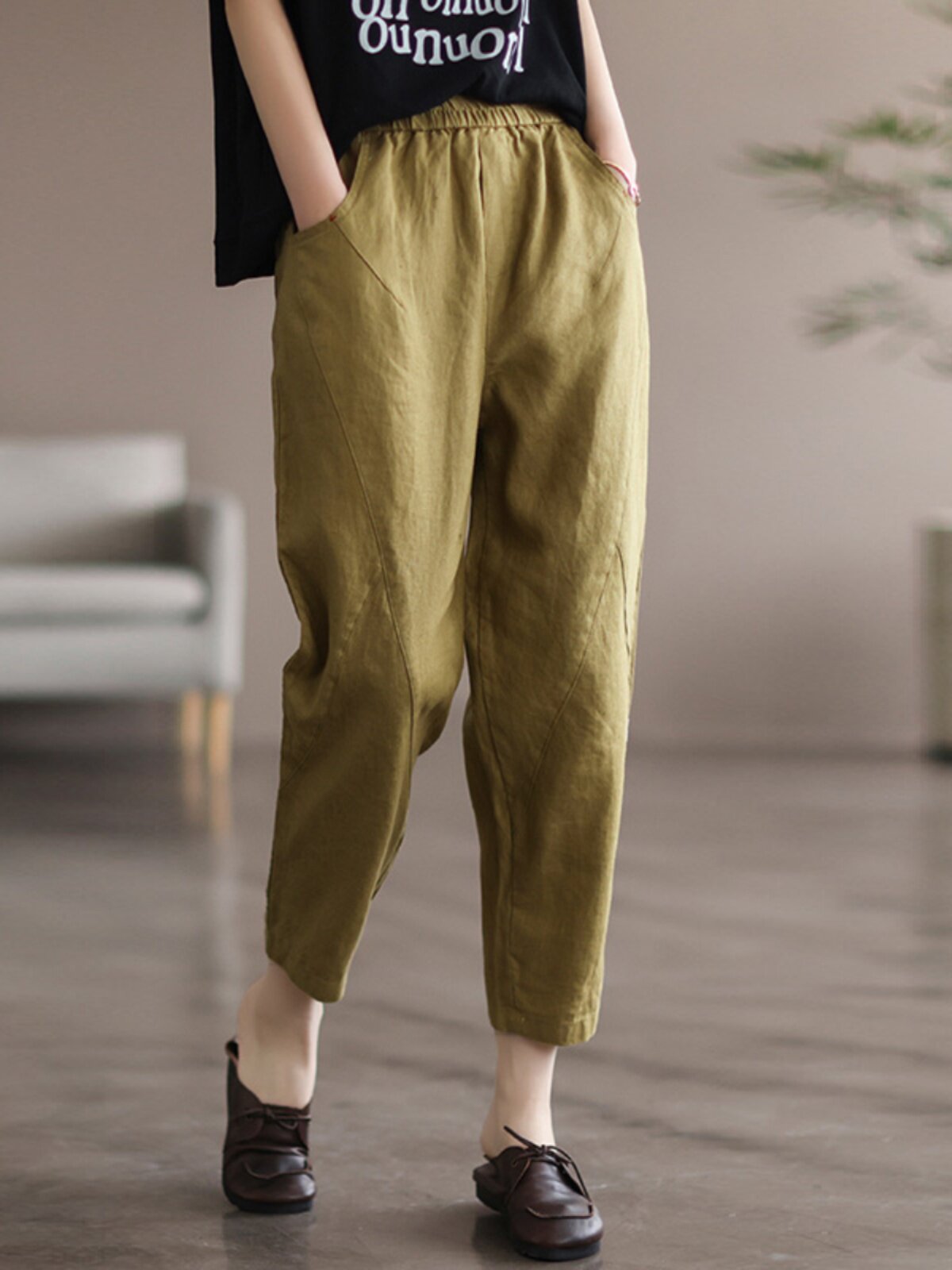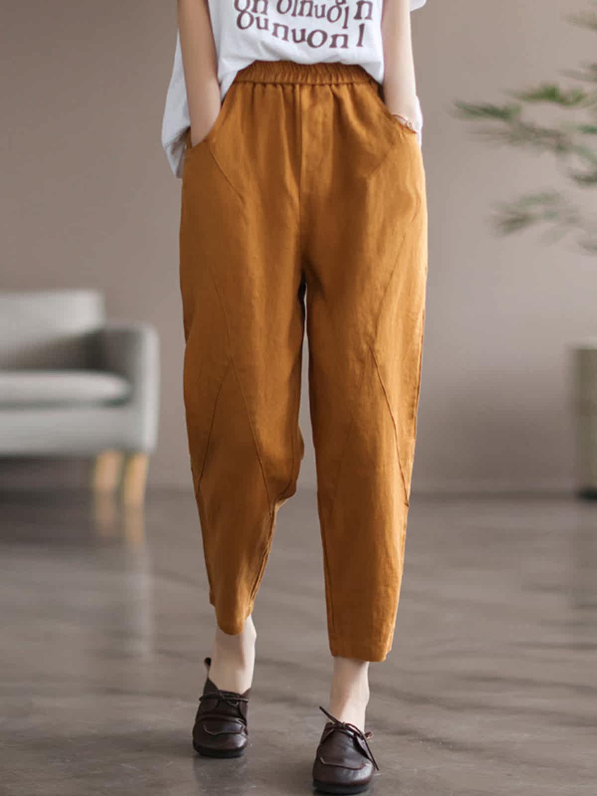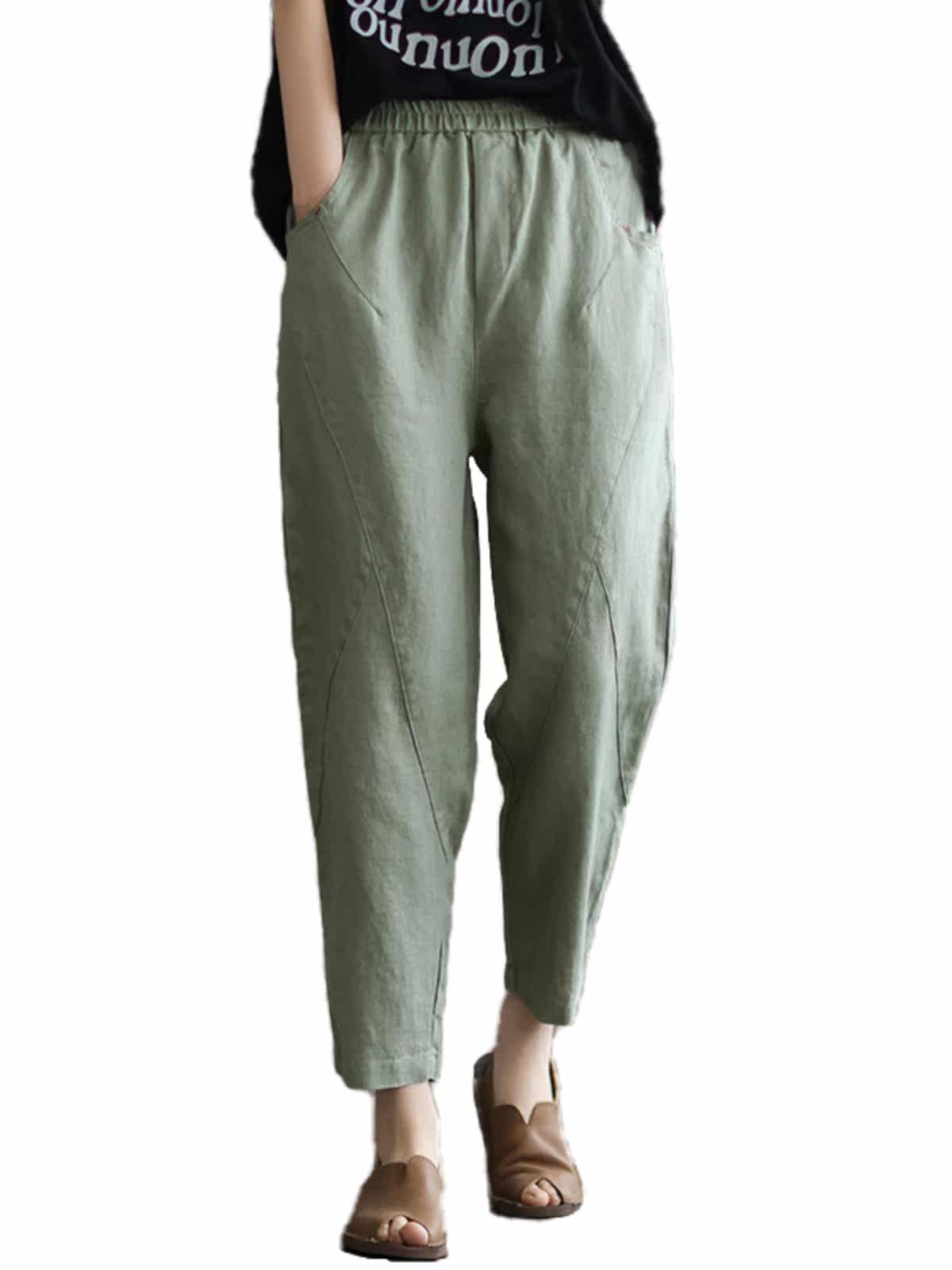 Летние тонкие штаны, из хлопка и льна, коллекция 2023, большой размер
