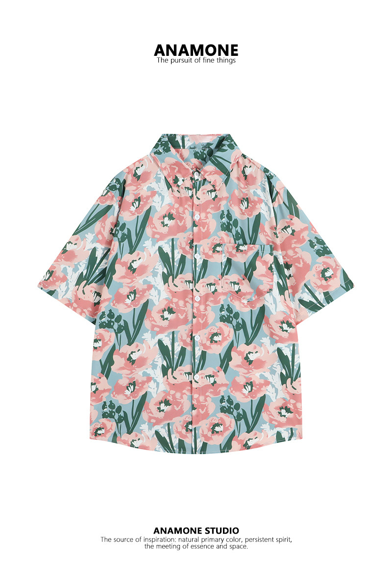 Анамоновое ретро Гонконг со вкусом масляной живописи цветочная рубашка Женская летняя туризм Юньнань Тайский Гавайский стиль курорта