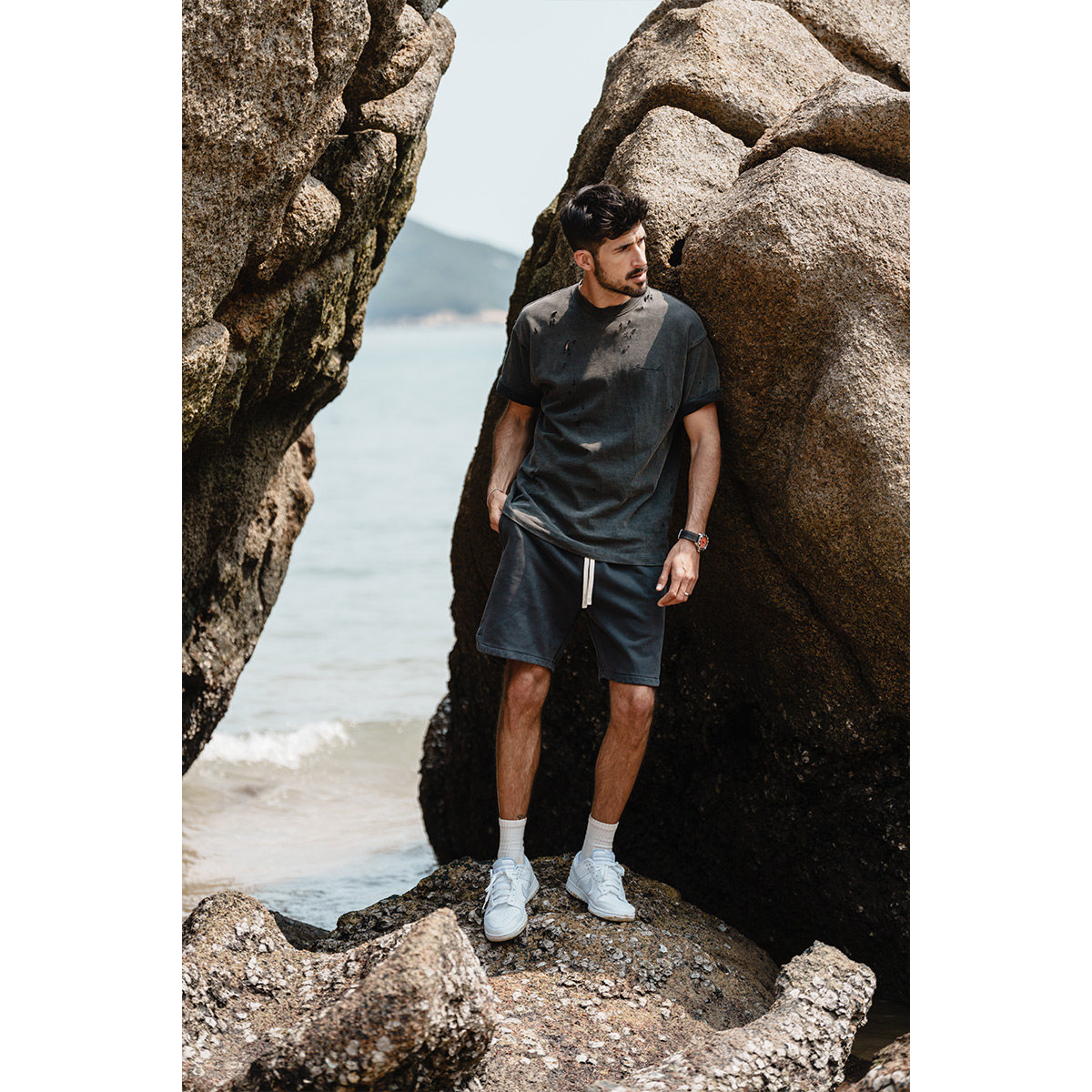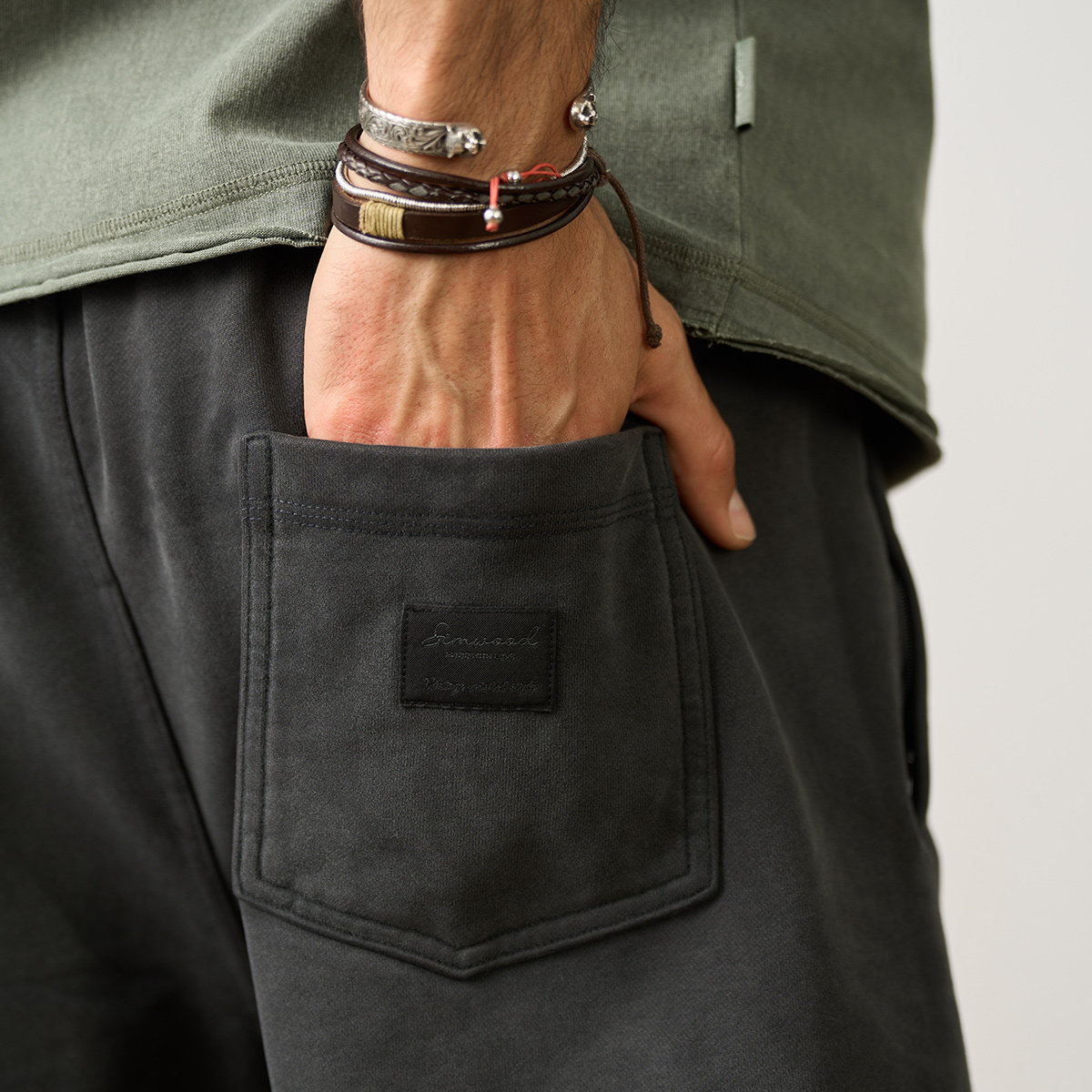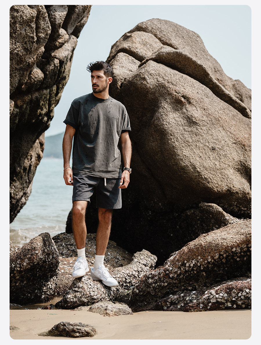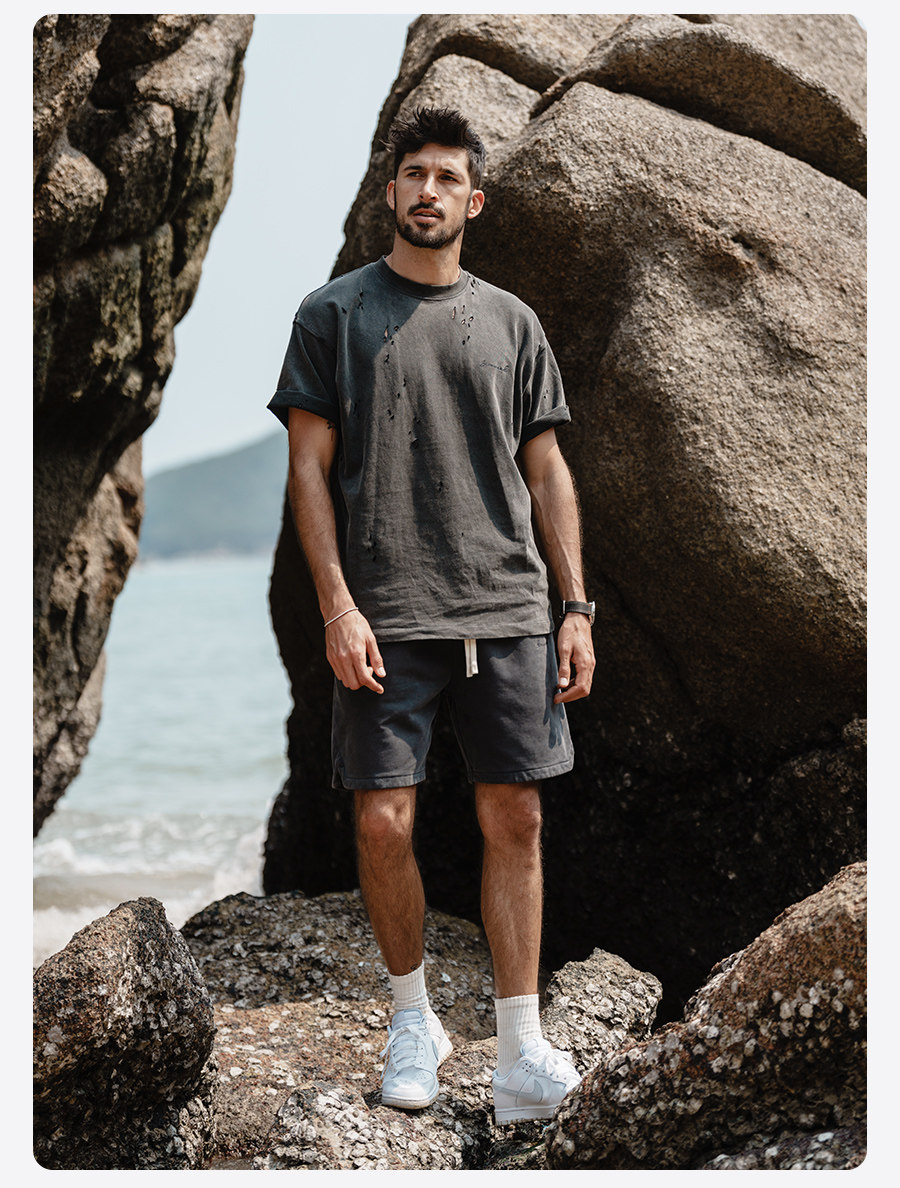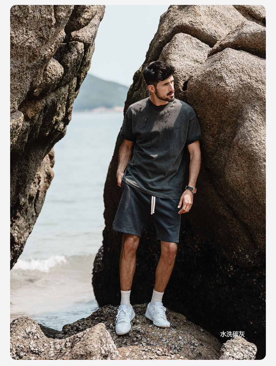 Simwood Мужская одежда Jianmu [свободная версия] Новые тяжелые потертые и потертые спортивные спортивные штаны весом 520 г, шорты